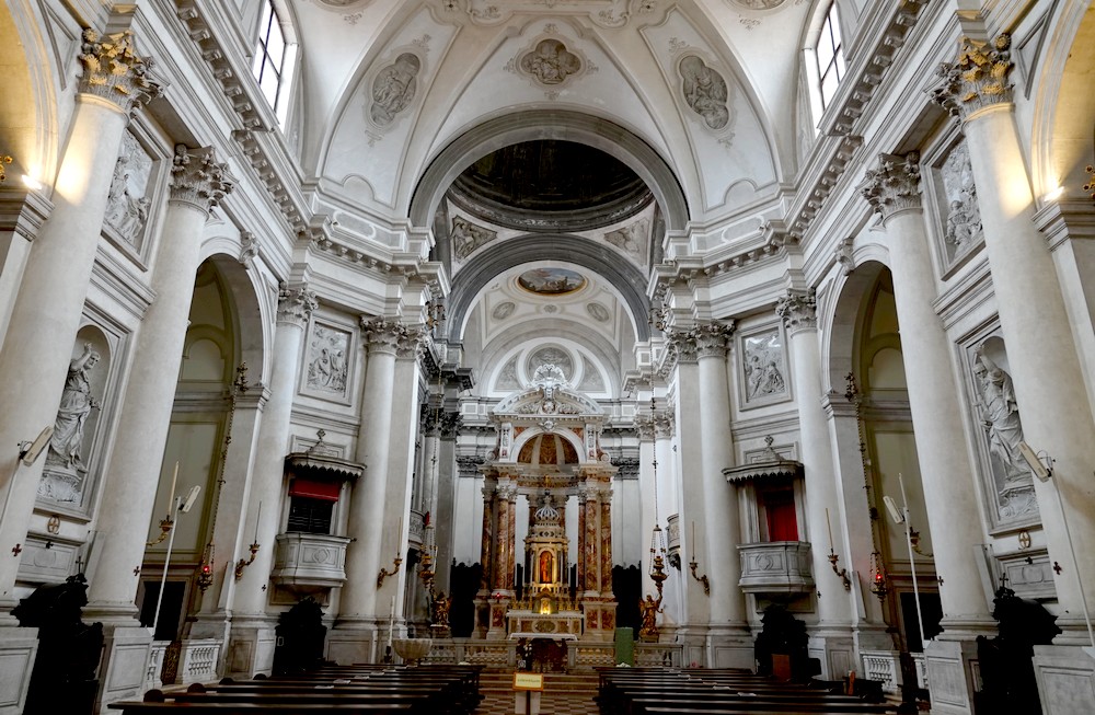 Avant de reprendre le vaporetto pour San Giorgio, nous visitons l’église du Rédempteur, érigée en 1577 en remerciement de l’aide divine accordée pour éradiquer l’épidémie de peste de 1575 – une histoire similaire à celle de la Salute…