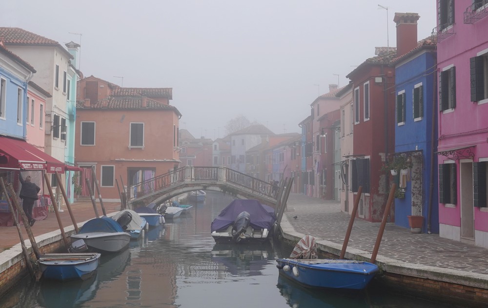 On l’aura compris, Burano est un de nos gros coup de cœur ! C’est pourquoi, comme je le disais plus haut, nous y sommes retournés mardi dernier, sous une brume épaisse cette fois. Au petit matin, l’ambiance était tout aussi charmante que sous le soleil !