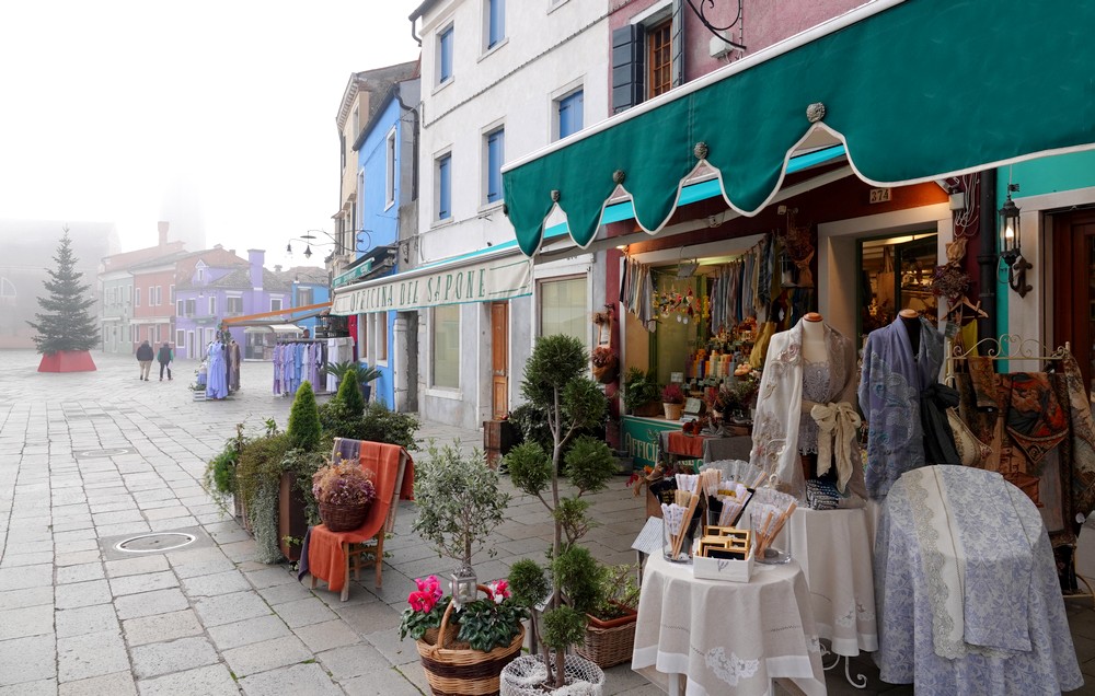 Parallèlement à la pêche, l’importance de Burano s’accroit au XVIe siècle, lorsque des femmes de l’île commencent à fabriquer de la dentelle – un art que l’on découvre au Musée Merletto, installé non loin de l’église dans l’ancienne école des dentelières.
