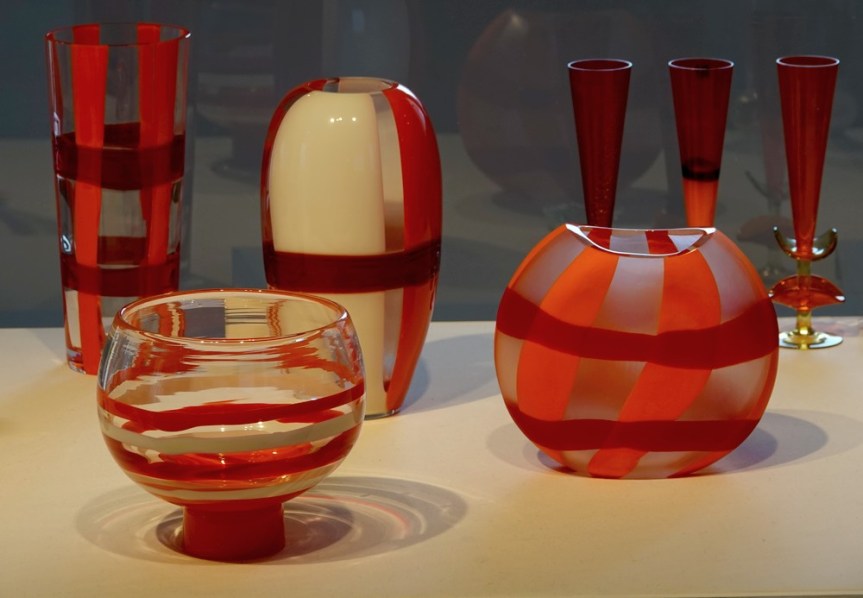 Célèbre pour ses nombreuses verreries – c’est surtout cet aspect que l’on va approfondir en visitant le Musée du Verre – Murano est depuis un décret de 1201 la seule ile où les artisans pouvaient installer leurs fours, leur interdisant ainsi de rester à Venise où de nombreux incendies s’étaient déclarés et propagés aux maisons en bois. (N’étant ni connaisseurs ni amateurs de verre, nous avons sélectionné des objets qui nous plaisent, mais qui ne reflètent peut-être pas la réalité de la création actuelle.)