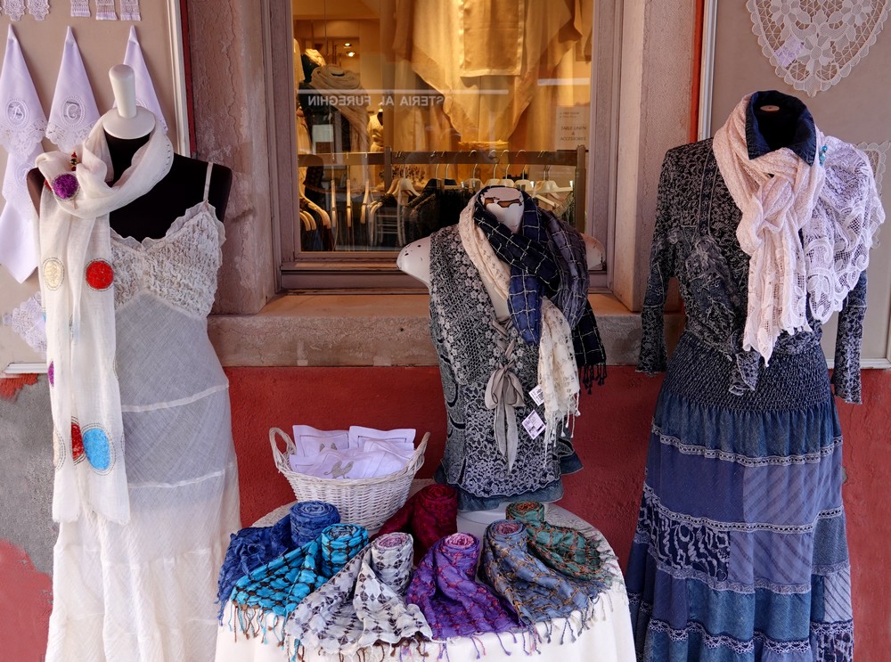 A côté de ces pièces de dentelle exceptionnelles – et inabordables en termes financiers – les boutiques de Burano proposent un bel artisanat lié au textile.