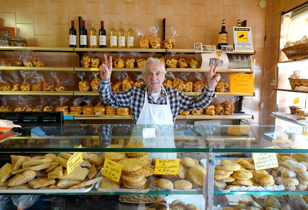 Depuis toujours, la pêche est l’une des activités principales – aujourd’hui c’est surtout celle aux mollusques qui est pratiquée. Et c’est justement en raison de cette activité que les maisons sont si colorées : en effet, à l’origine, les pêcheurs peignaient leur maison de différentes couleurs pour se repérer et reconnaître leur maison en cas de brume, un phénomène météorologique particulièrement fréquent en hiver – d’ailleurs, la seconde fois que nous sommes allés à Burano, nous étions dans une purée de pois bien épaisse !