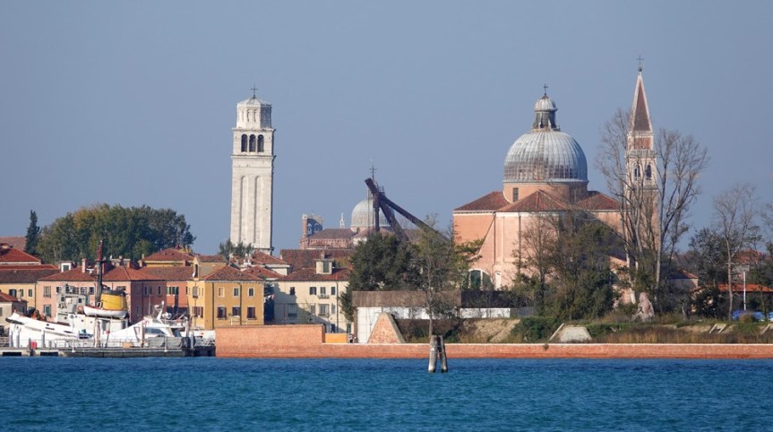 C’est donc a pedibus que nous partons de la gare maritime en longeant le quai jusqu’à l’église Saint Nicolas du Lido. Le guide nous rappelle que, non loin de là, en 1202, cette partie de l’ile se transforma en un immense campement où plus de 30.000 croisés attendirent d’embarquer en Terre Sainte, pour ce qui devait être la quatrième croisade. A ce sujet, nous avons lu un livre passionnant de Roger Crowley – City of Fortune– qui retrace toute l’histoire de Venise de l’an 1000 à 1500.