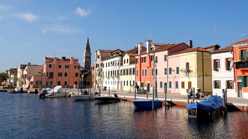 Puis c’est de nouveau en bus que nous rejoignons Malamocco, une grosse bourgade posée entre lagune et mer, où le temps semble s’être arrêté. Autrefois, la petite cité servait de port à la riche ville de Padoue, et de 742 à 811, les doges y eurent même leur résidence avant que la population ne soit transférée à Rivo Alto, la future Venise.