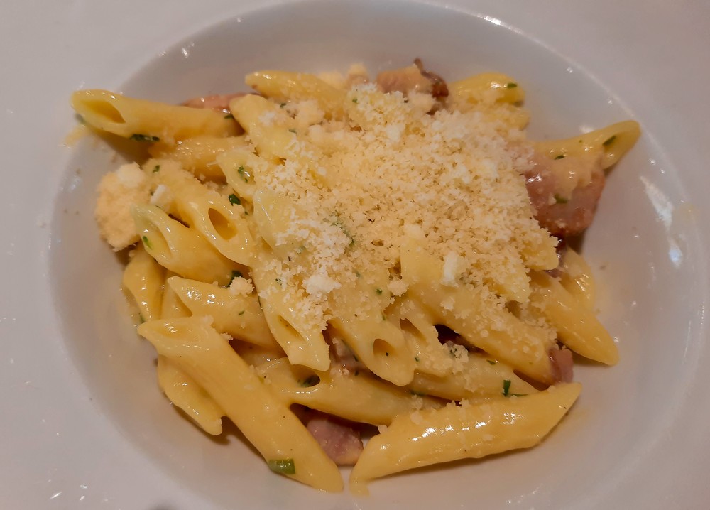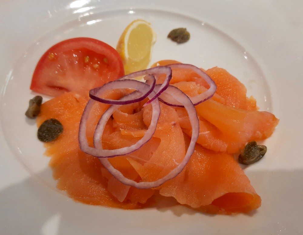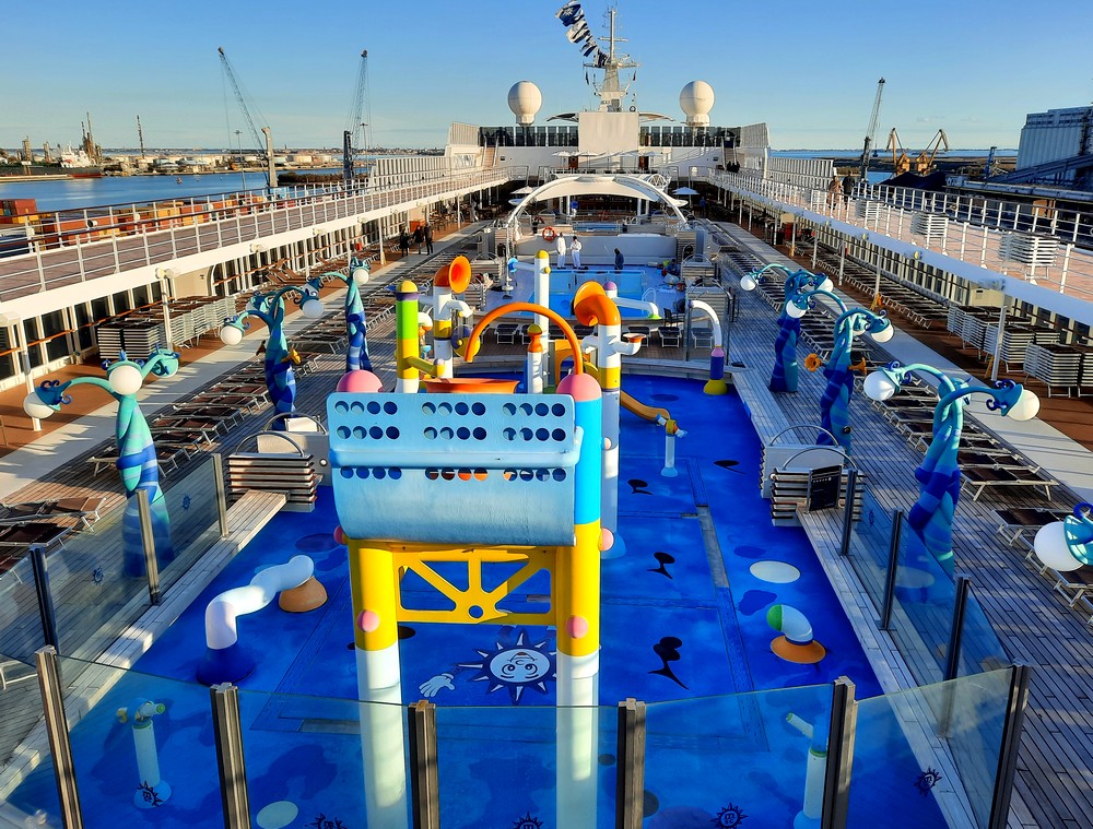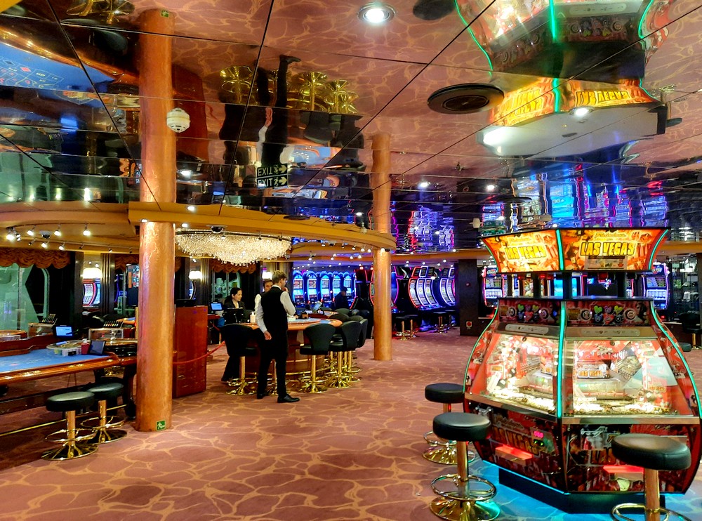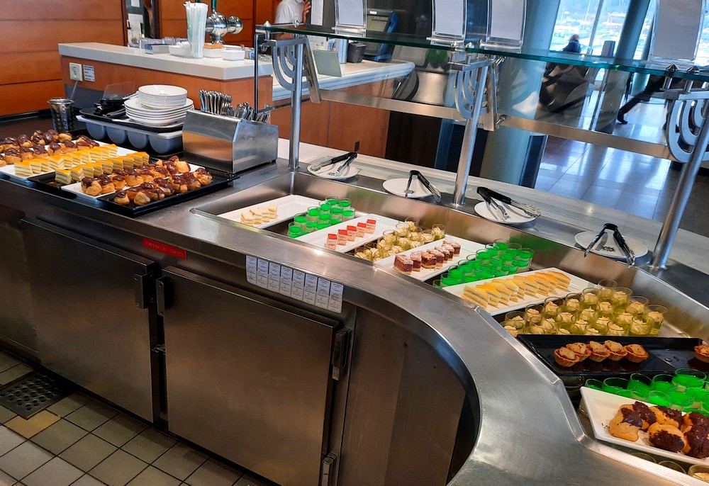C’est après un ultime trajet très matinal sur le Grand Canal à bord d’un vaporetto de la ligne 1, suivi d’un court trajet en Moover – un métro aérien – que nous rejoignons la gare maritime de Venise. Si les paquebots n’accostent plus à cet endroit depuis quelques années déjà, les formalités d’embarquement s’effectuent toujours ici. Après un contrôle rapide des certificats de vaccination, tests antigéniques, tickets de voyage et passeports, l’attente est ensuite assez longue pour que nous soit délivrée notre carte de croisière – véritable sésame de notre voyage qui nous servira autant à ouvrir la porte de notre cabine qu’à régler nos consommations ou autres dépenses à bord. Finalement, vers 13h30, nous montons à bord d’une navette maritime qui nous mène en une petite demi-heure jusqu’à l’Armonia, amarré au port de Marghera. Une fois dans le bateau, et après une dernière queue où nos passeports nous sont retirés – si quelqu’un connait la législation exacte en la matière, je suis preneuse, car il n’est jamais agréable d’être ainsi dépossédé de ce précieux laisser-passer de voyage – nous filons sur le pont supérieur où le buffet permet de se restaurer à toute heure de la journée ! Puis nous partons à la découverte du bateau en enchainant les montées et descentes d’escaliers, les ascenseurs étant bondés de passagers qui cherchent leur cabine. Notre première impression est positive : la conception du bateau étant assez ancienne, il est à « taille humaine » et ne n’affiche aucun clinquant superflu. Tant mieux ! Néanmoins, les infrastructures sont de très bon niveau avec piscine, pont pour la marche, salle de sport, théâtre et nombreux salons… Après avoir récupéré les bagages dans la cabine – installée sur le pont 9 – et sacrifié à l’indispensable exercice de sécurité, il ne nous reste qu’à siroter un apéritif bien mérité au bar del Duomo, puis à rejoindre la Pergola, le restaurant qui nous a été attribué pour le diner. Diner dont la qualité se révèle nettement au-dessus de nos attentes !