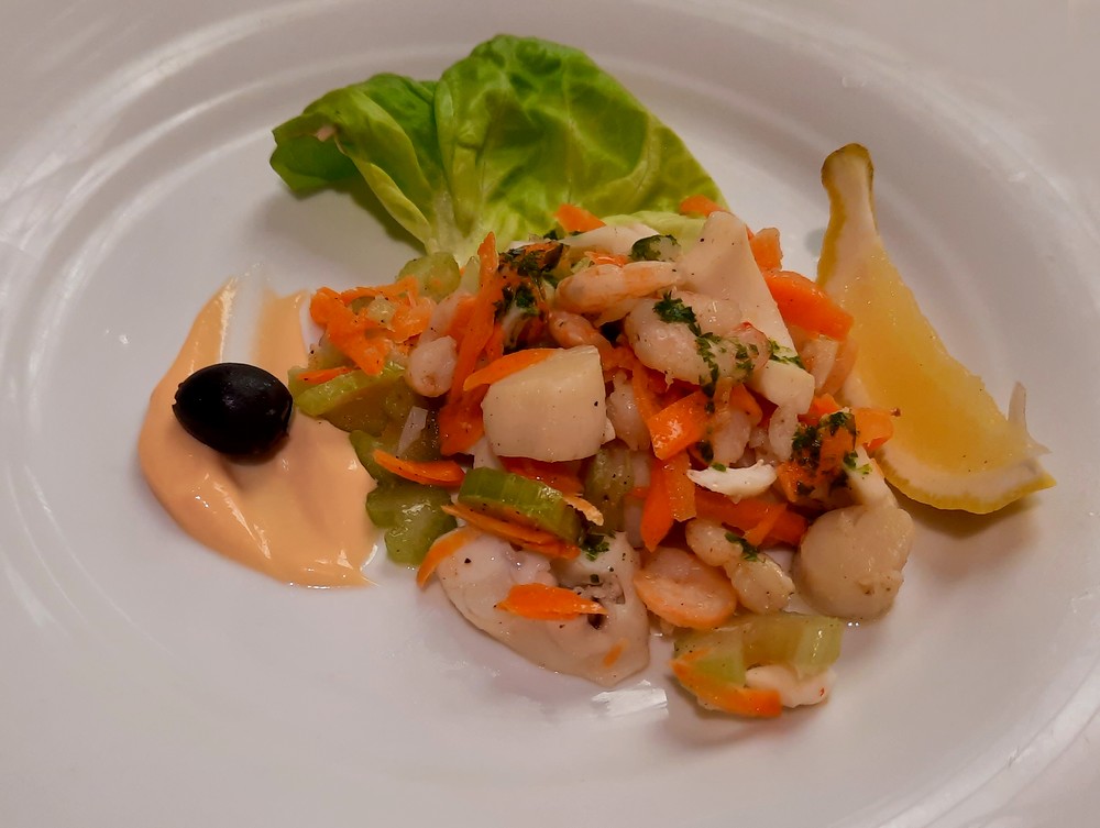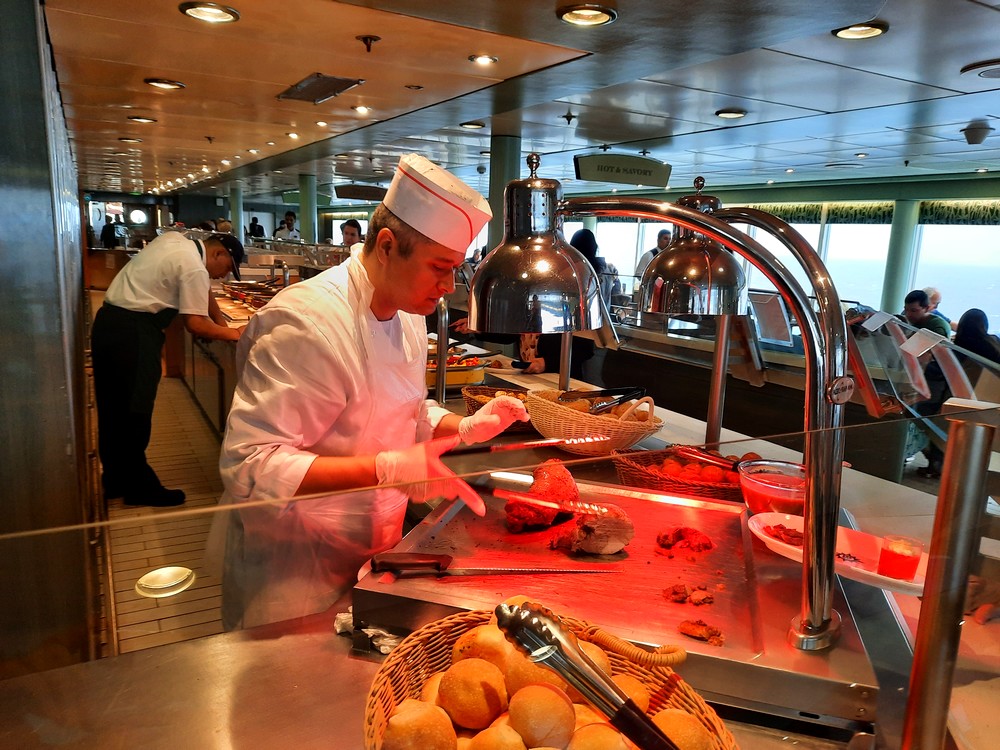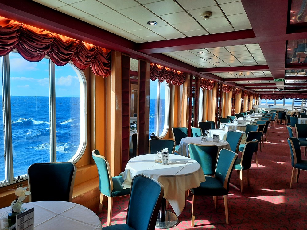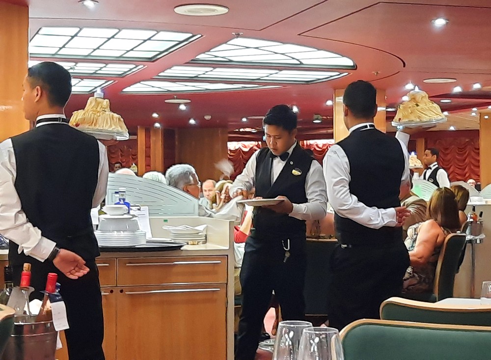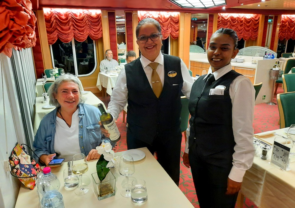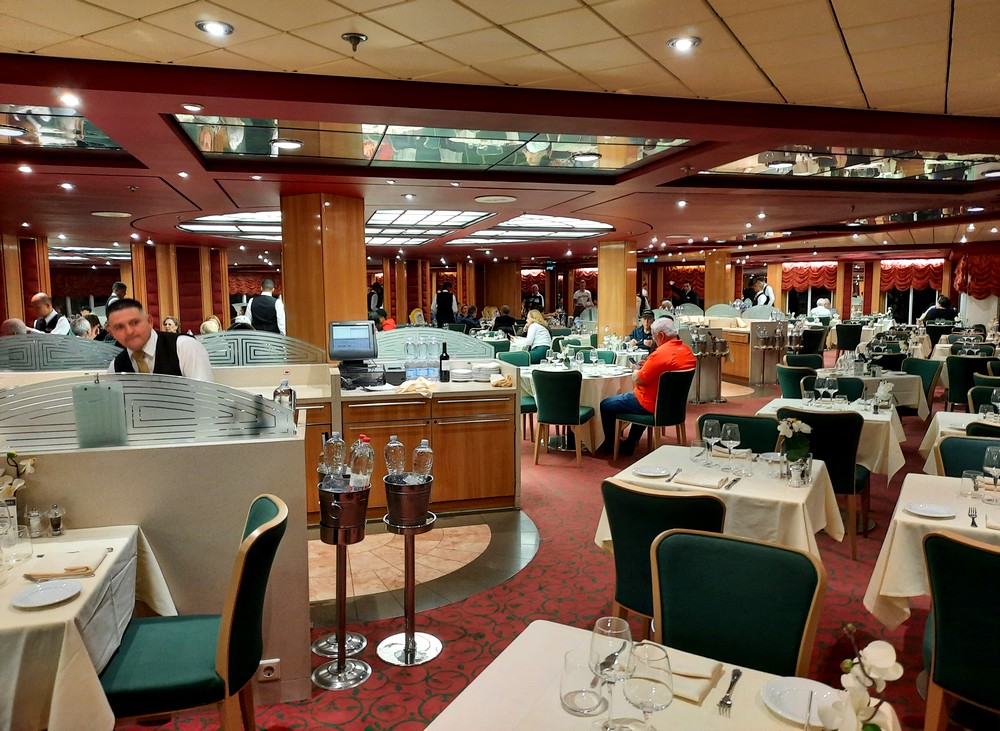 Pour le déjeuner, nous alternons entre buffet et restaurant, avec une petite préférence pour ce dernier, les plats y étant plus originaux. Le soir, après le traditionnel apéritif siroté dans un des bars du bateau, nous dinons toujours au restaurant. Là encore, nous ne pouvons qu’apprécier la qualité des plats servis. Bref, on l’aura compris, cette transatlantique aura, sans fausse note, ravi nos estomacs de gourmets, d’autant que l’accueil des maitres d’hôtel et serveurs / serveuses est très sympathique, à l’image de l’ensemble du personnel d’ailleurs !
