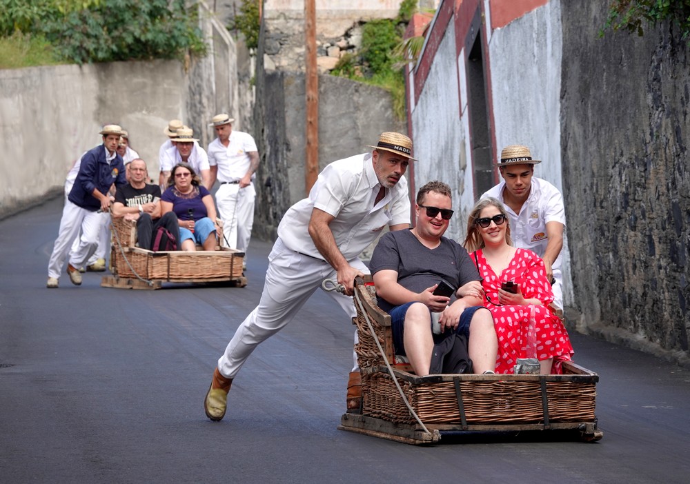 Rien n’a vraiment changé aujourd’hui, la foule se presse toujours nombreuse pour éprouver le frisson d’une descente sur route à près 50km/h, dans un traineau dépourvu de freins et de volant – les carreiros assurant la trajectoire et le freinage à l’aide de leurs bottes à semelles de caoutchouc.