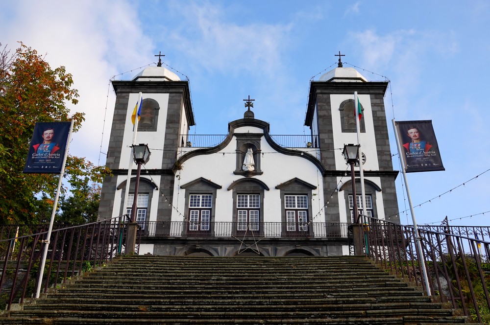 Une journée de navigation plus tard, c’est au petit matin que nous parvenons à Funchal, la capitale de l’ile de Madère. Toujours les premiers à sortir du bateau, c’est à 7h tapante que nous retrouvons la terre ferme où nous sautons immédiatement dans un taxi pour Monte, un des quartiers les plus hauts de la ville. Autant dire qu’à cette heure très matinale, il n’y a pas foule ! Nous prenons donc tout notre temps pour observer le beau paysage qui s’offre à nos yeux, et jetons un œil au sanctuaire Nossa Senhora do Monte.