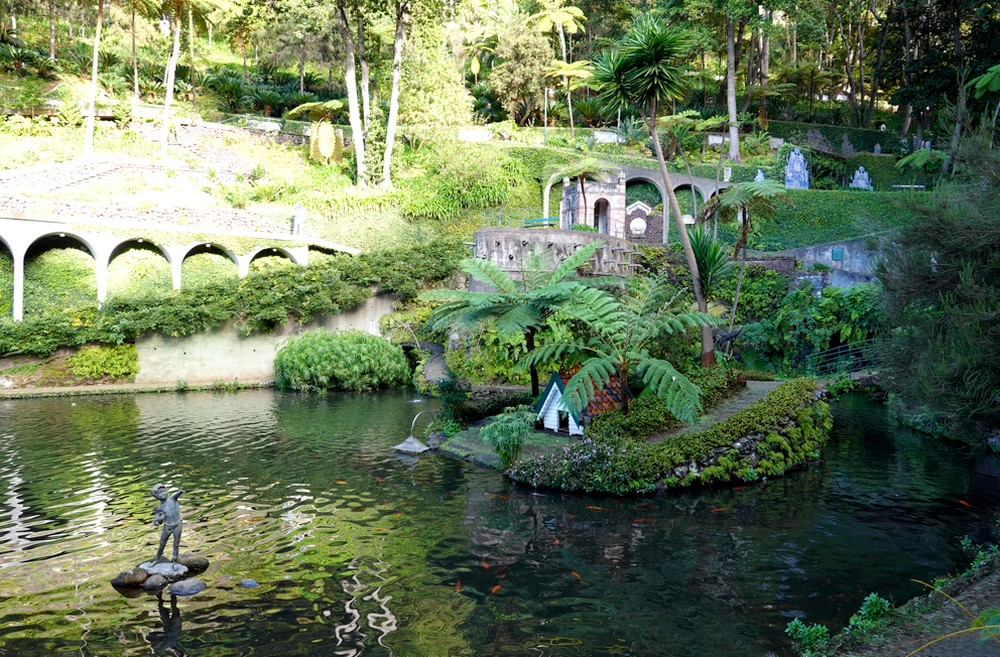 Madère étant célèbre pour la luxuriance de sa végétation, nous visitons le Jardin tropical de Monte Palace situé à quelques pas du sanctuaire. Même si la saison n’est celle de la pleine floraison, la balade est vraiment très agréable, dans un cadre arboré à souhait et parsemé d’azulejos dont certains retracent le passé de l’ile.