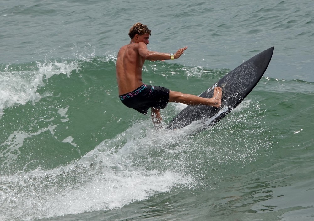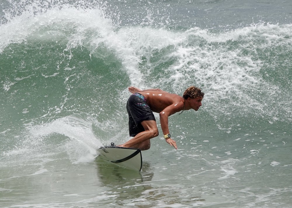 Là, pas de doute, c’est un spot parfait pour les surfeurs, et nous passons un long moment à les observer, une coco à la main – à défaut de trempette, on se rafraichit avec un très bon jus !