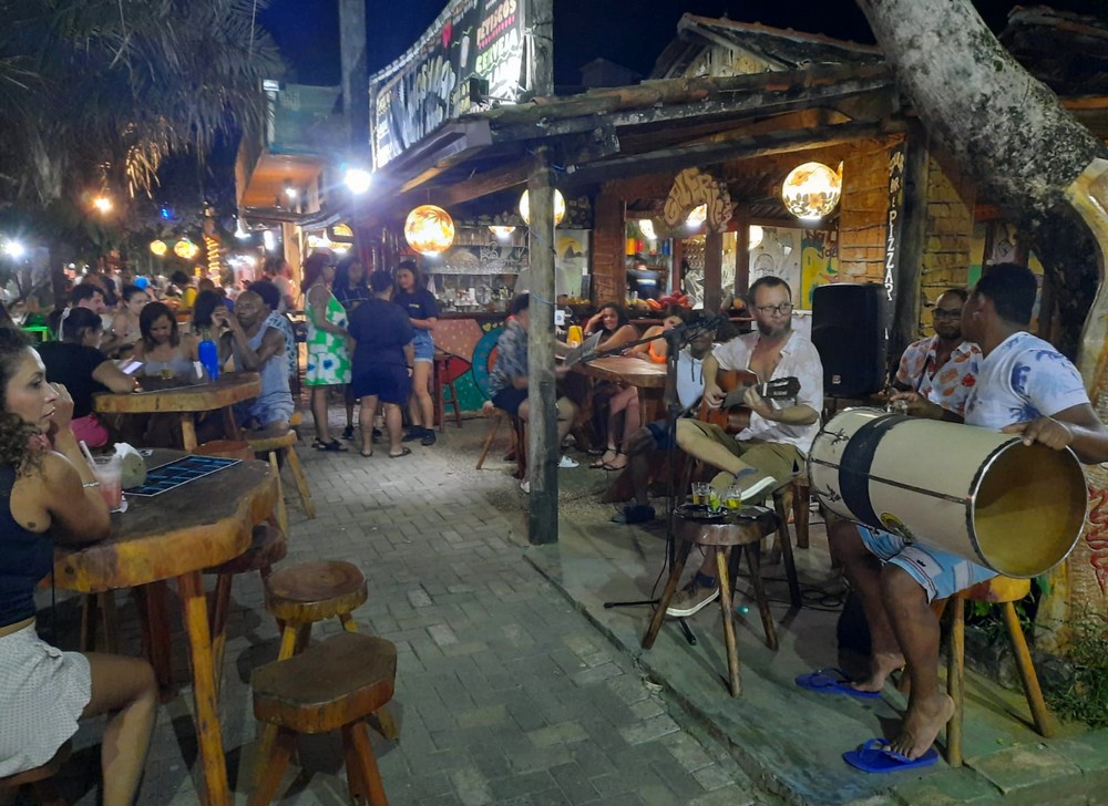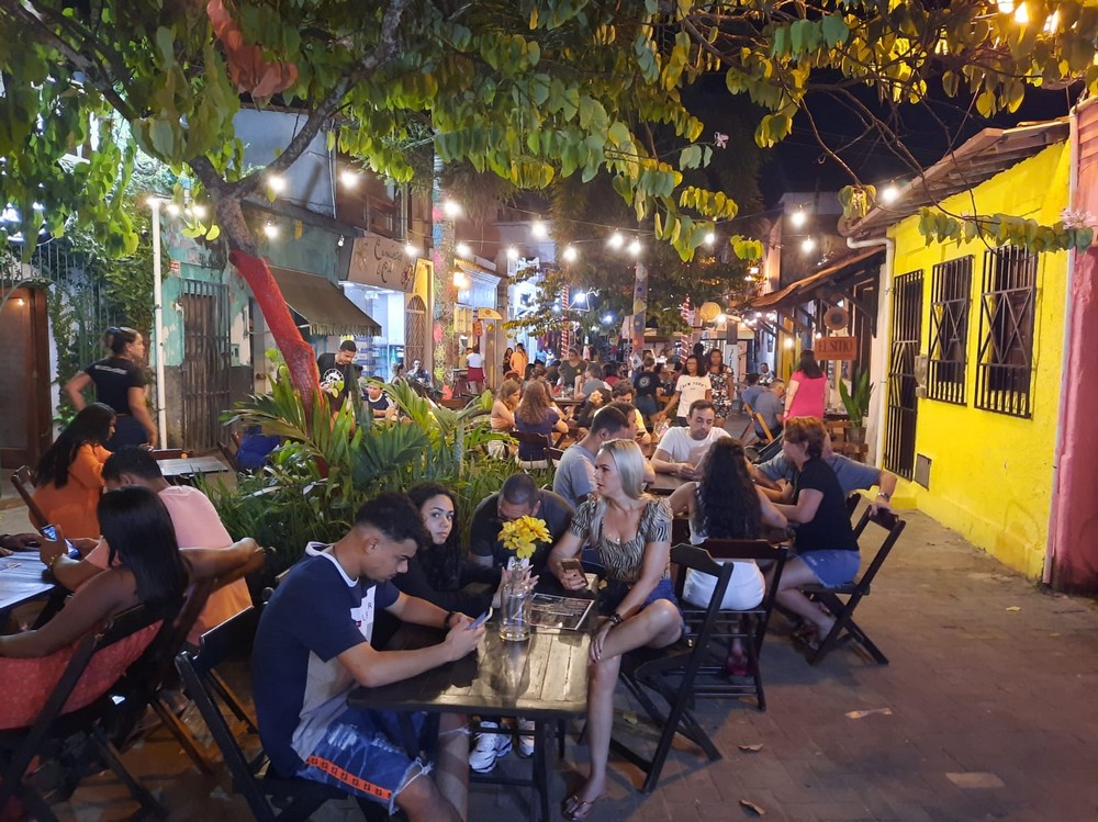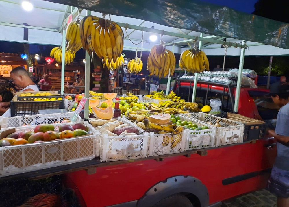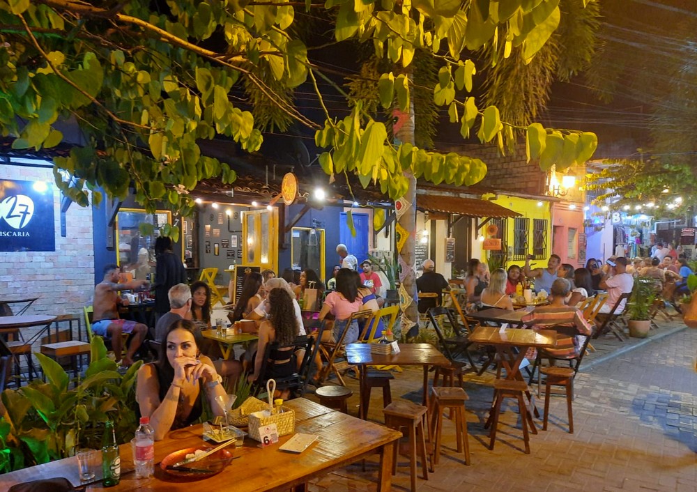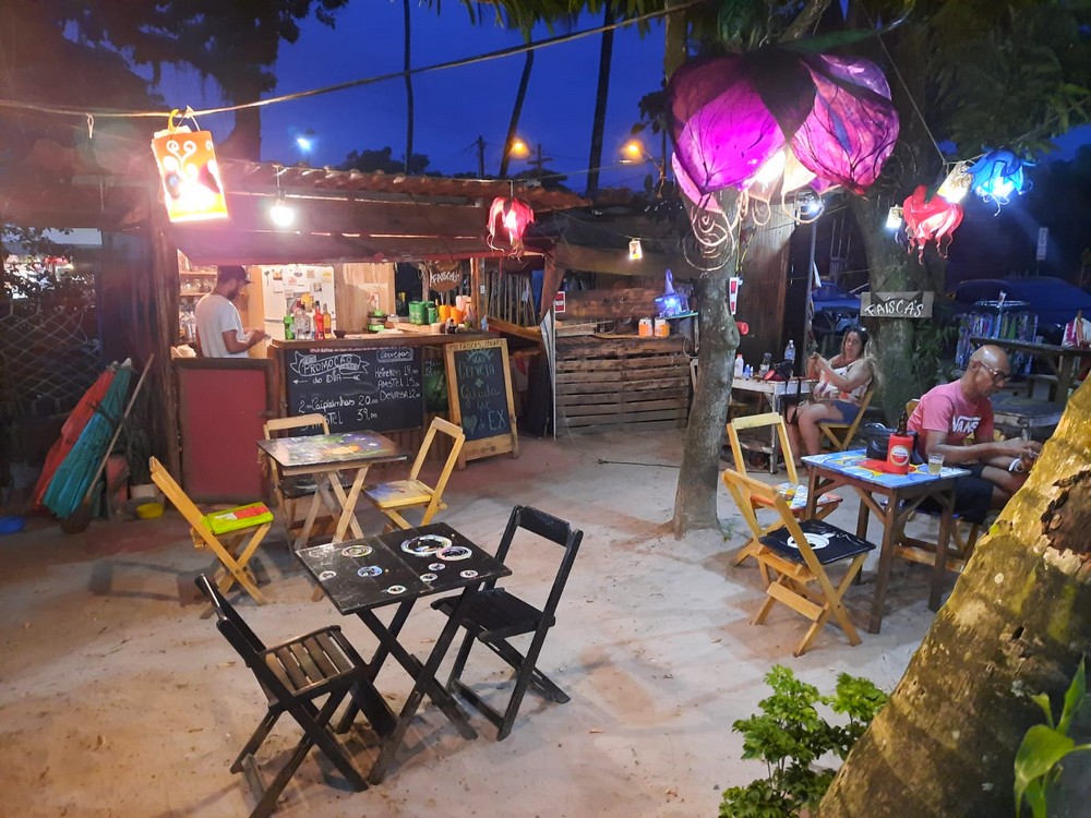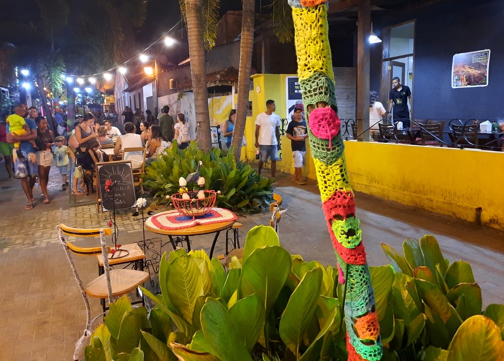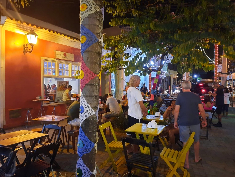 En début de soirée, une petite soif se faisant sentir, nous faisons un tour dans la rue piétonne toute proche. A priori, c’est ici que se concentre l’animation nocturne, les restos et les boutiques ! L’ambiance est agréable, mais nettement moins festive qu’au Morro, ce qui ne nous empêche pas de nous attabler devant une caïpirinha bien rafraichissante – oui, ici aussi il fait chaud !