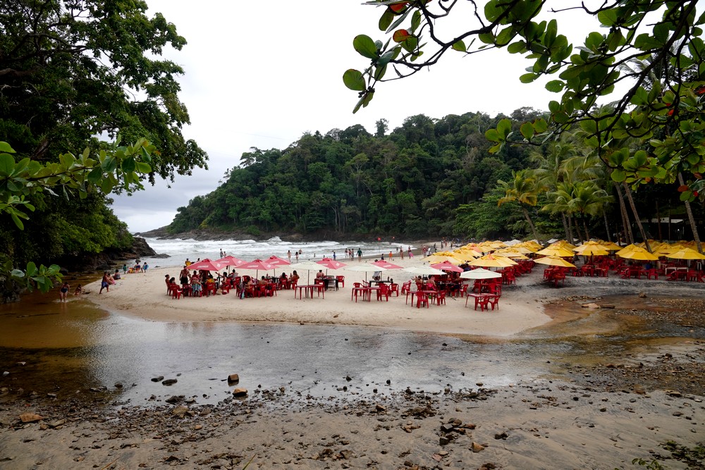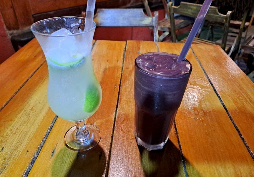 Et pour le dessert, nous retournons à la Tropicália Pousada pour déguster un bol d’açaï – une mixture liquide réalisée à partir d’une baie qui pousse au sommet de certains palmiers, riche en antioxydants, minéraux et fibres – aromatisé au cacao, à la mangue et à l’ananas. Gérard apprécie beaucoup, moi je suis moins fan, je préfère nettement déguster une classique caïpirinha !