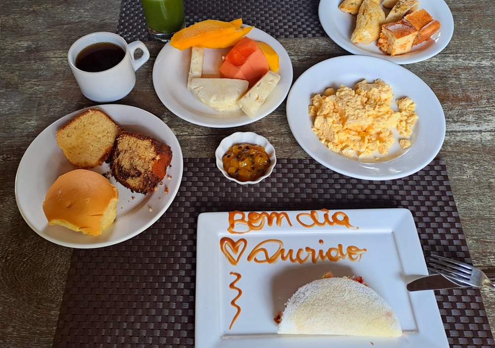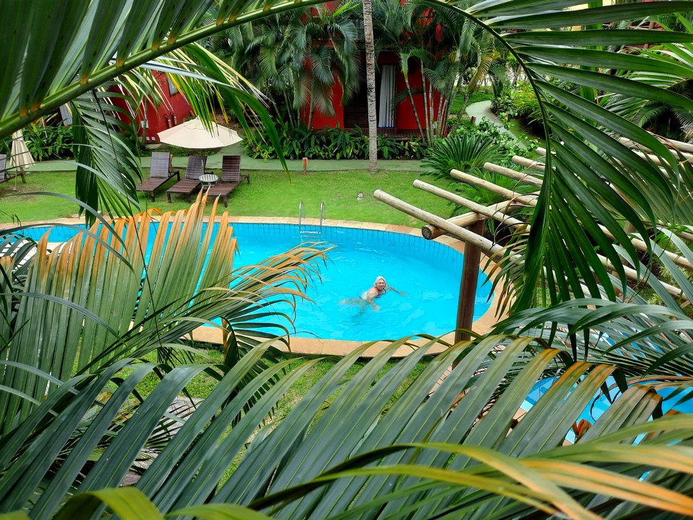 - Logement : Pousada Vira Canoa, un hôtel de charme idéalement situé à 5mn de la rue piétonne et des restaurant. Très bel environnement végétal, piscine agréable, bar et restaurant (ferment tous deux à 20h, à réserver plutôt pour les consommations et repas en journée). Belle chambre double avec salle de bain privée, deux terrasses dont une avec vue sur la piscine, clim, wifi. Excellent petit-déjeuner (et la dame qui fait les crêpes à la demande est charmante !). Environ 52€ la nuit, un bon rapport qualité / prix, résa via Booking. Attention, il nous a été très difficile de bloquer puis de payer nos nuitées avec nos CB internationales, leur terminal n’acceptant que les cartes brésiliennes. A force d’insister, on a fini par obtenir gain de cause – c’est-à-dire qu’ils sortent un autre terminal bancaire ! Accueil sympathique mais personnel pas très compétent et peu organisé.