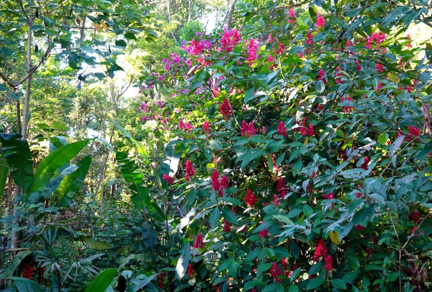 La balade se déroule dans le cadre somptueux de la forêt tropicale atlantique – on peut noter que lors de la création du parc, aucun arbre indigène ne fut abattu – et on croise quelques beaux spécimens de fleurs.