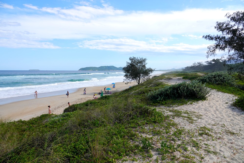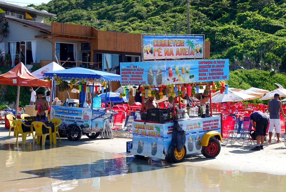 - Randonnée sur le sentier da Boa Vista jusqu’à la Praia Mole, au départ de Barra da Lagoa, de l’autre côté de la passerelle bleue, environ 8km, 250m+, durée environ 2h30 pauses comprises. Être très bien chaussé, sentier correct avec quelques passages difficiles (et peu de prises pour les pieds et les mains). Parfois la végétation masque un peu le sentier, faire attention. Ne pas entreprendre cette rando seul car peu de passage (en cas de pépin) mais a priori la 4G passe partout. Prendre de l’eau, un chapeau. Baignade possible sur les Praia da Galheta et Praia Mole (cette dernière est surveillée), mais être prudent, grosses vagues. Sur la Praia Mole, on conseille les jus de fruits du Tropical Bar, ils sont excellents. Retour à Barra da Lagoa avec le bus 360 (toutes les 20mn, R$6). Une balade coup de cœur pour nous !