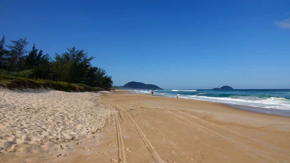 - Balade sur la Praia do Moįambique, située au nord de Barra da Lagoa, parking gratuit. Baignade non recommandée car dangereuse. Pas de bars ni de restaurants, prévoir eau et chapeau. Il y a une piste qui longe la piste et que l’on peut également prendre à pied, au retour par exemple, pour varier les paysages.