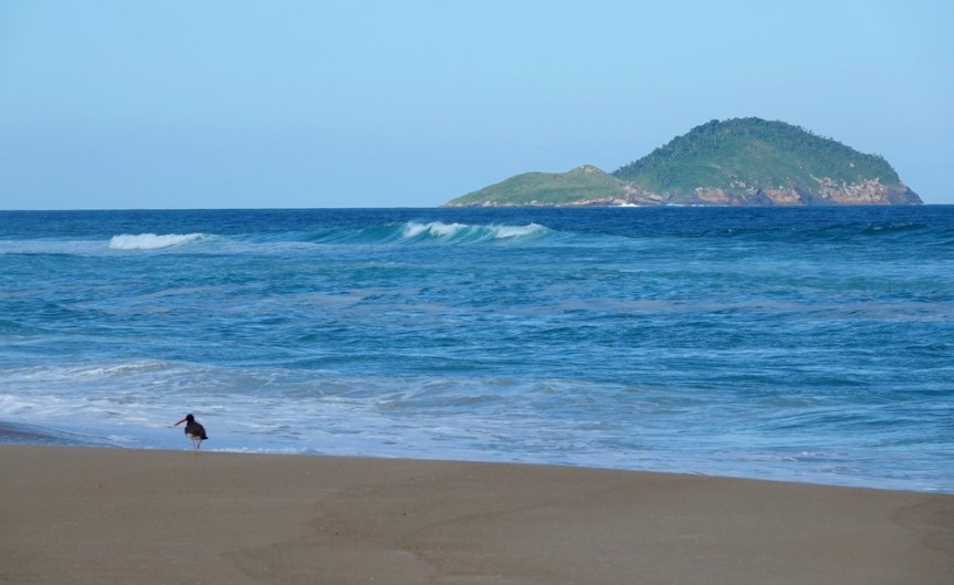 Pour notre dernier jour à Floripa, on ne déroge pas à notre lever aux aurores. Et c’est de nouveau à 6h45 que nous entrons dans l’eau fraiche de la Prainha da Barra – la plage dont nous nous sommes attribué la propriété temporaire ! Nous espérions revoir les dauphins, mais a priori, eux avaient décidé que le dimanche la grasse-matinée s’imposait…