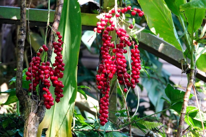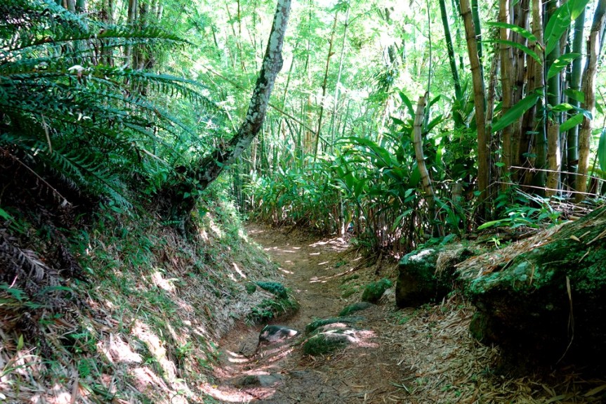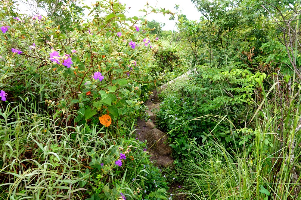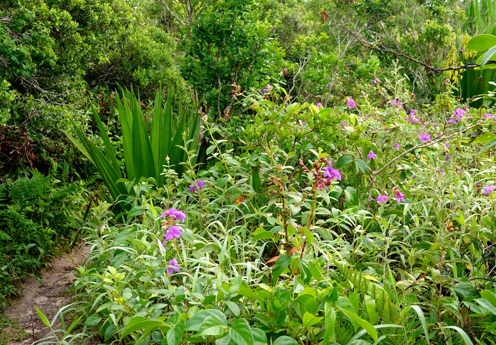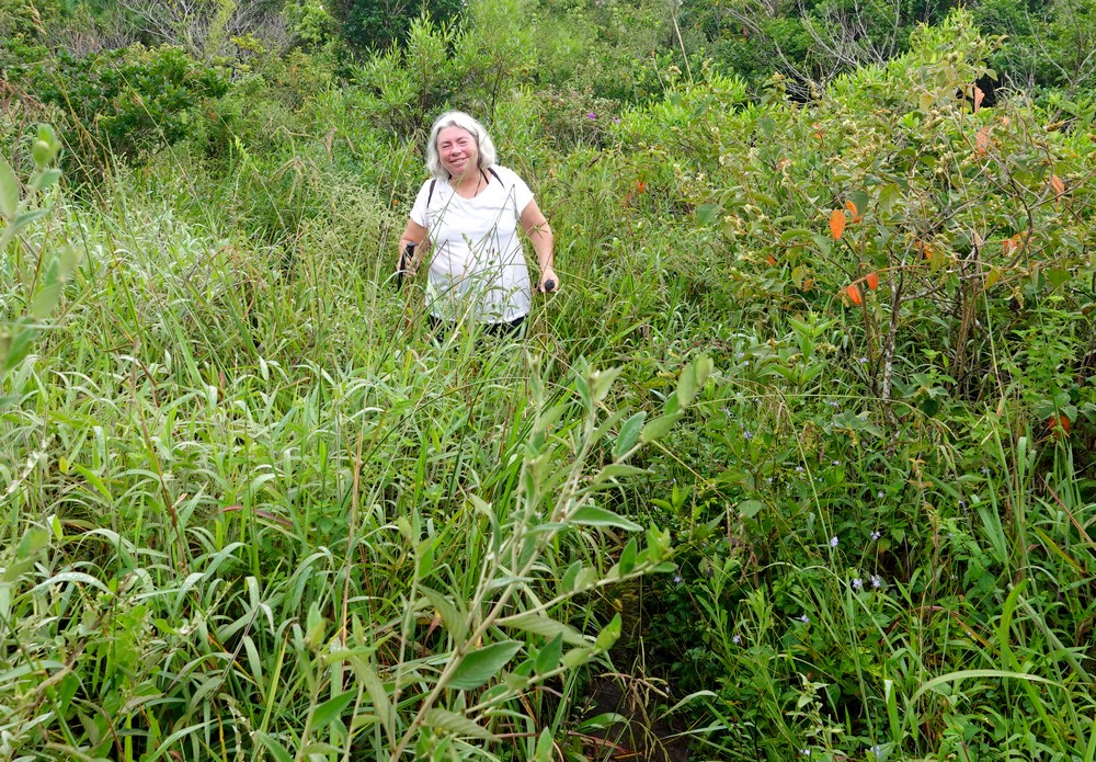 Le cheminement, bien marqué au début, se perd un peu dans la végétation au fur et à mesure que l’on avance – ce qui ne me plait guère car j’aime bien voir où je pose les pieds ! Mais qu’importe, on se régale de marcher dans cette végétation luxuriante…