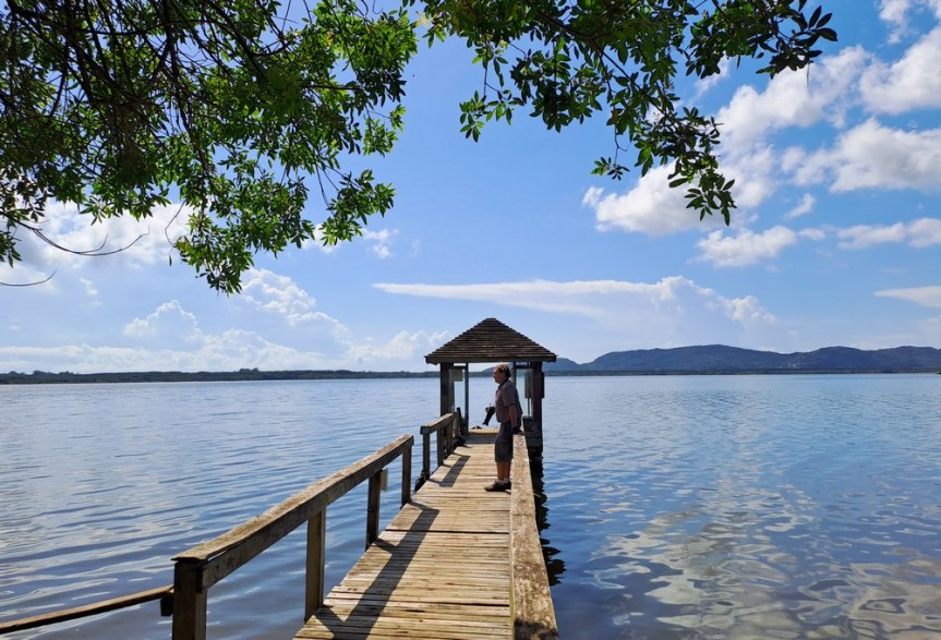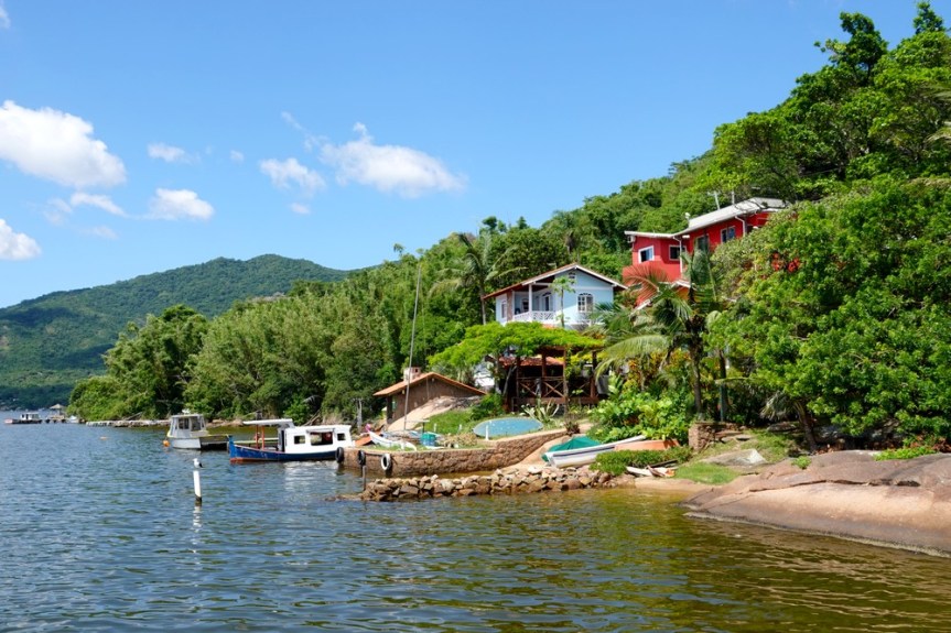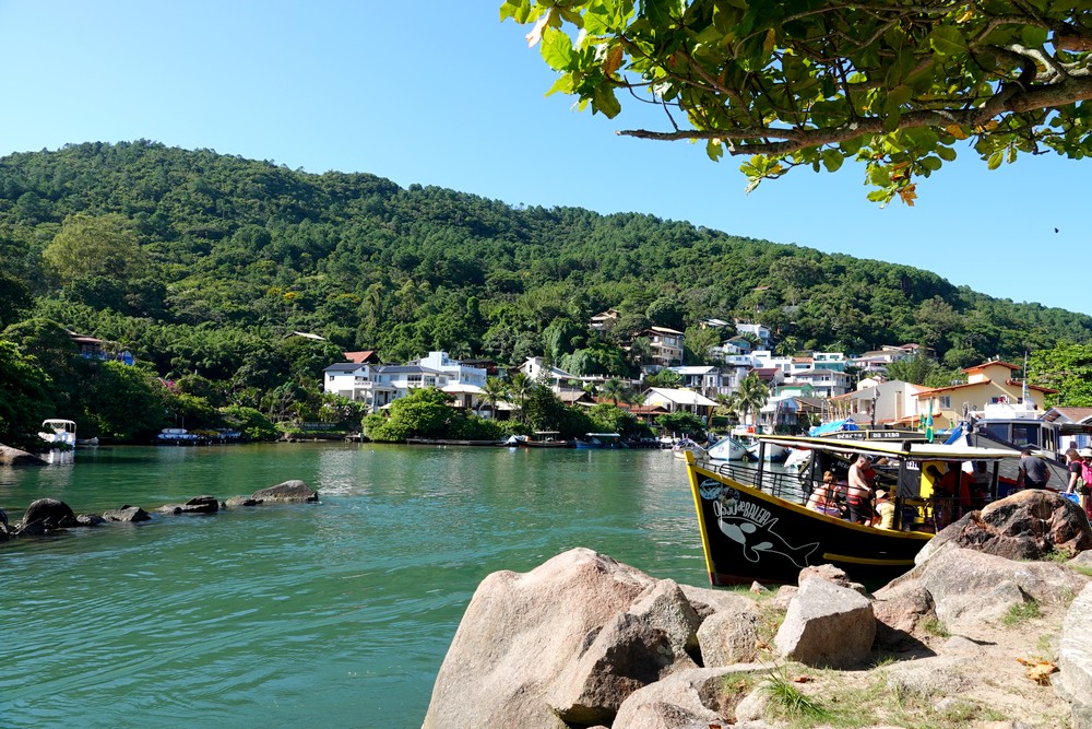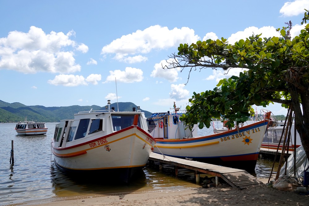 - Randonnée sur le sentier Costa da Lagoa. Accès via la rive sud-ouest du Lagoa Da Conceição, un peu au nord de Canto dos Araçás, au niveau du ponton 3. Parkings payants disponibles (mais malheureusement fermés quand nous sommes arrivés à 7h30), quelques places disponibles en stationnement libre. A priori, semble desservi pas le bus. 8km, environ 200m+, durée 2h30 pauses comprises. On conseille de faire le chemin dans ce sens, et pas dans l’autre (car dans ce cas, descentes plus difficiles à négocier). Être très bien chaussé car sentier parfois très glissant. Prendre eau et chapeau. On traverse plusieurs hameaux, quelques bars et restos en chemin. A l’arrivée, nous recommandons le Restaurante Bela Ilha, très bon accueil, plats copieux et gouteux, bon rapport qualité / prix. Bateau de retour offert pour les clients (à heure fixe, durée 10mn), sinon bateau-bus locaux (plusieurs arrêts sur le lac). Une superbe balade et un déjeuner dans un cadre splendide, un coup de cœur pour nous ! Pour ceux qui ne souhaitent pas marcher, possibilité de prendre le bateau de ligne en aller-retour jusqu’aux restaurants.