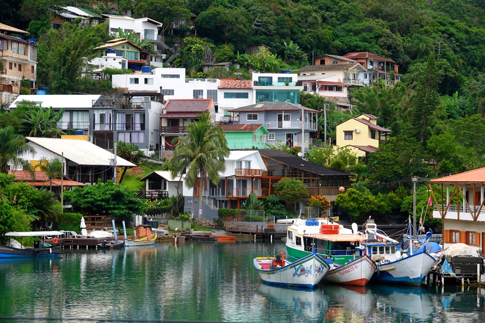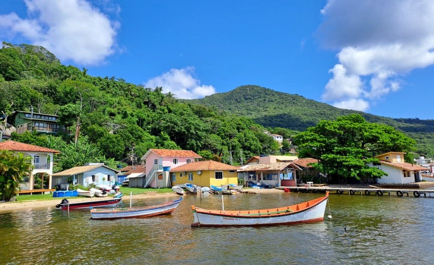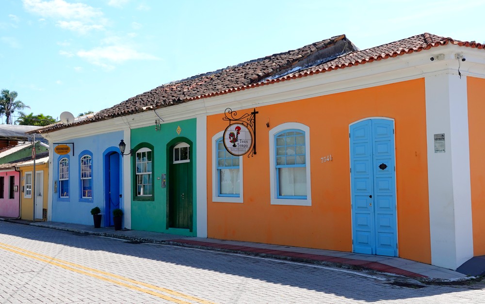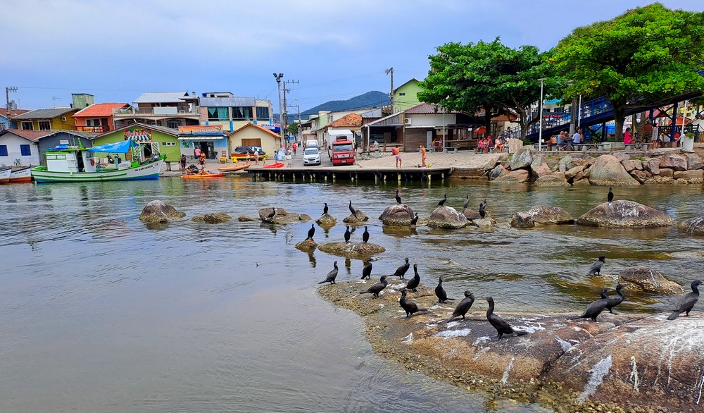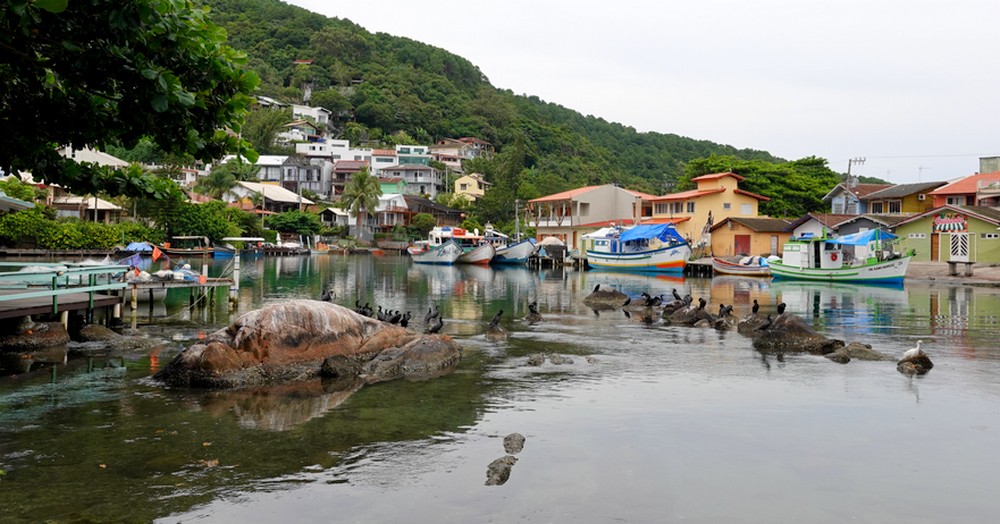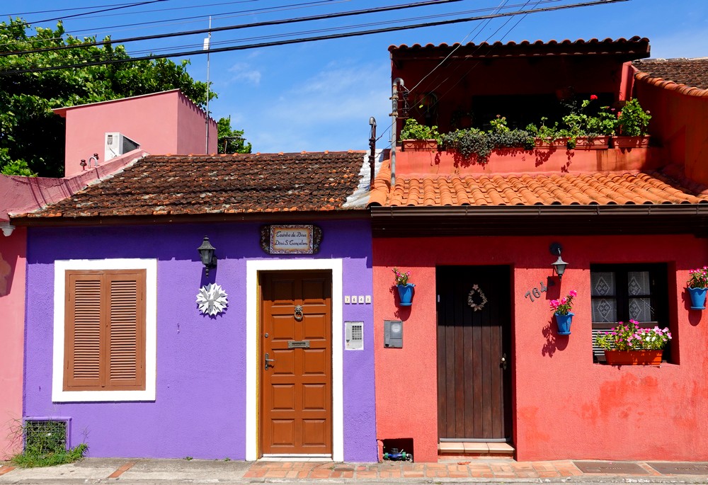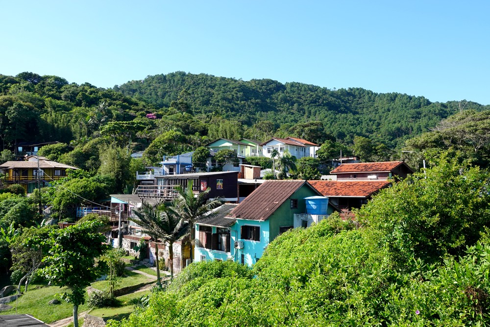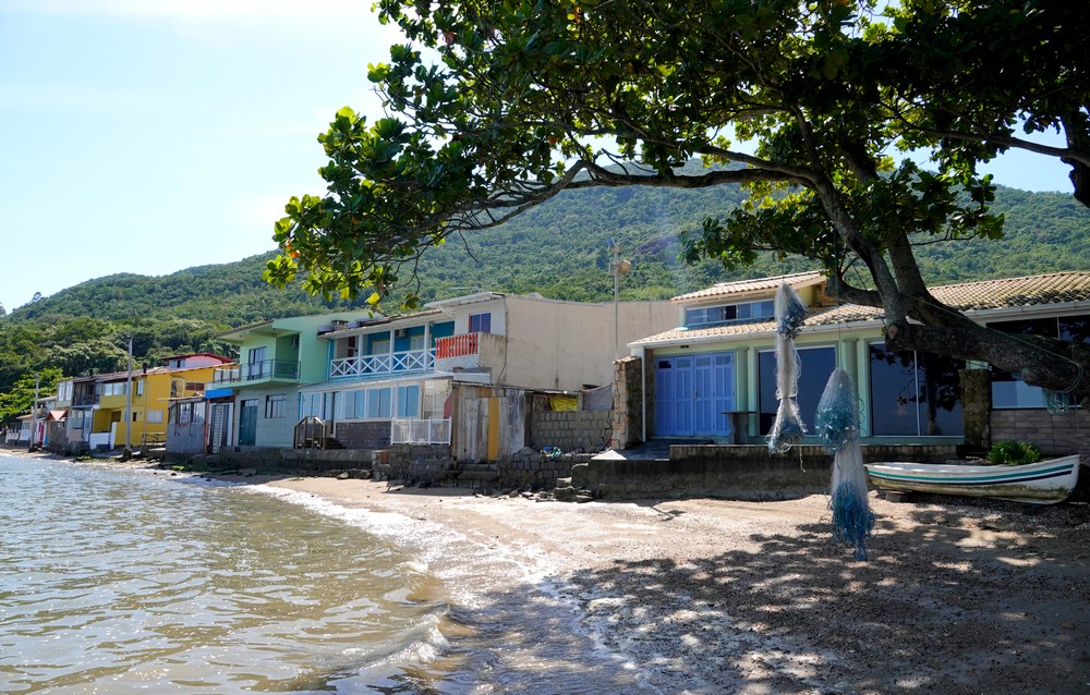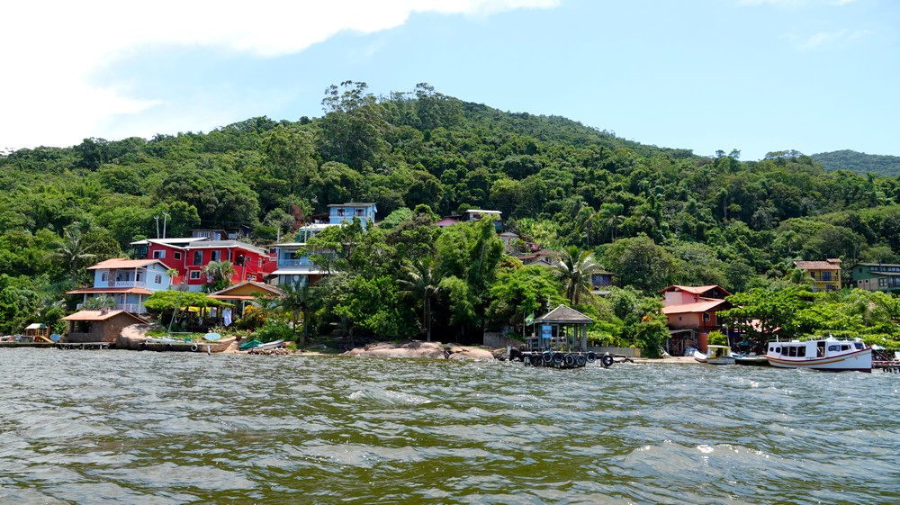 Vers 9h30, nous reprenons la route en direction de la côte sud-ouest de l’ile. Le trafic est assez intense et nous mettons près de 45mn pour rejoindre Freguesia do Ribeirão. Le village, qui s’étire le long de la côte, est remarquable pour ses maisons colorées érigées dans un style que l’on retrouve généralement aux Açores. Logique, car entre 1748 et 1756, cette partie excentrée de Florianopolis fut colonisée par une cinquantaine de familles en provenance des Açores et de Madère.