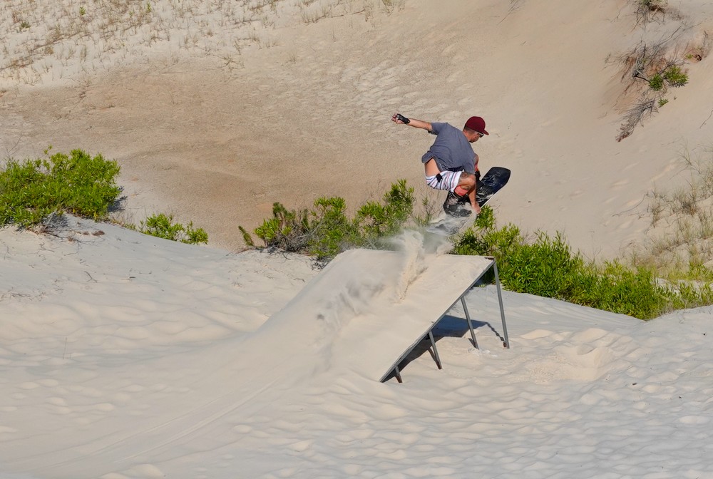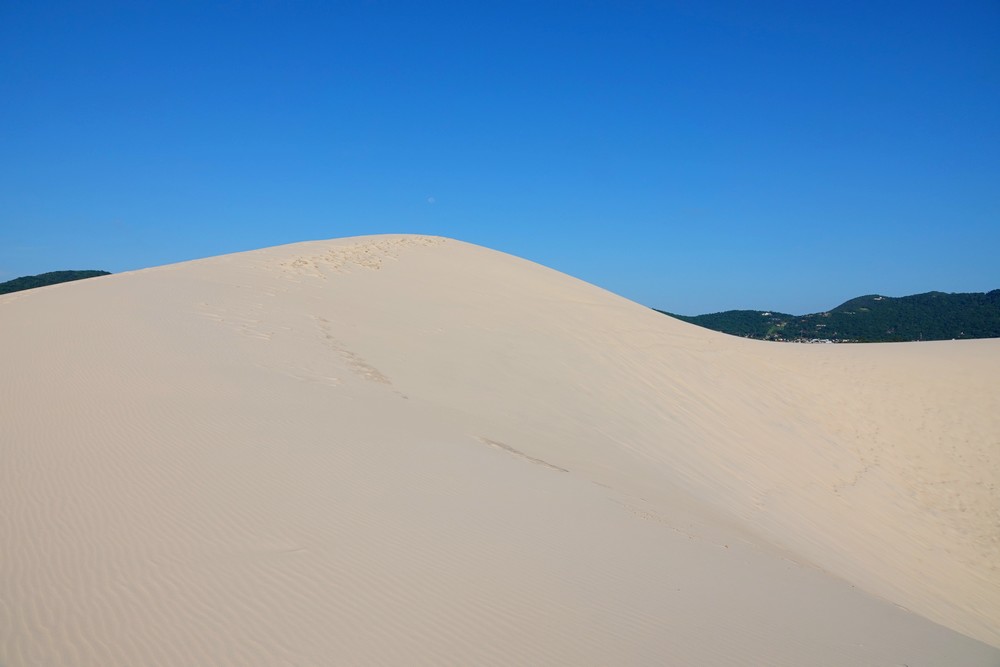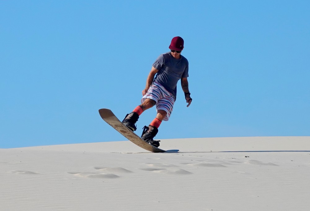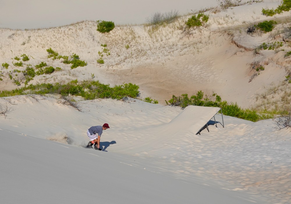Le site est particulièrement apprécié des visiteurs qui tentent parfois de dévaler les pentes en surf. D’ailleurs, on passe un bon moment à observer un surfeur qui nous fait une belle démonstration !