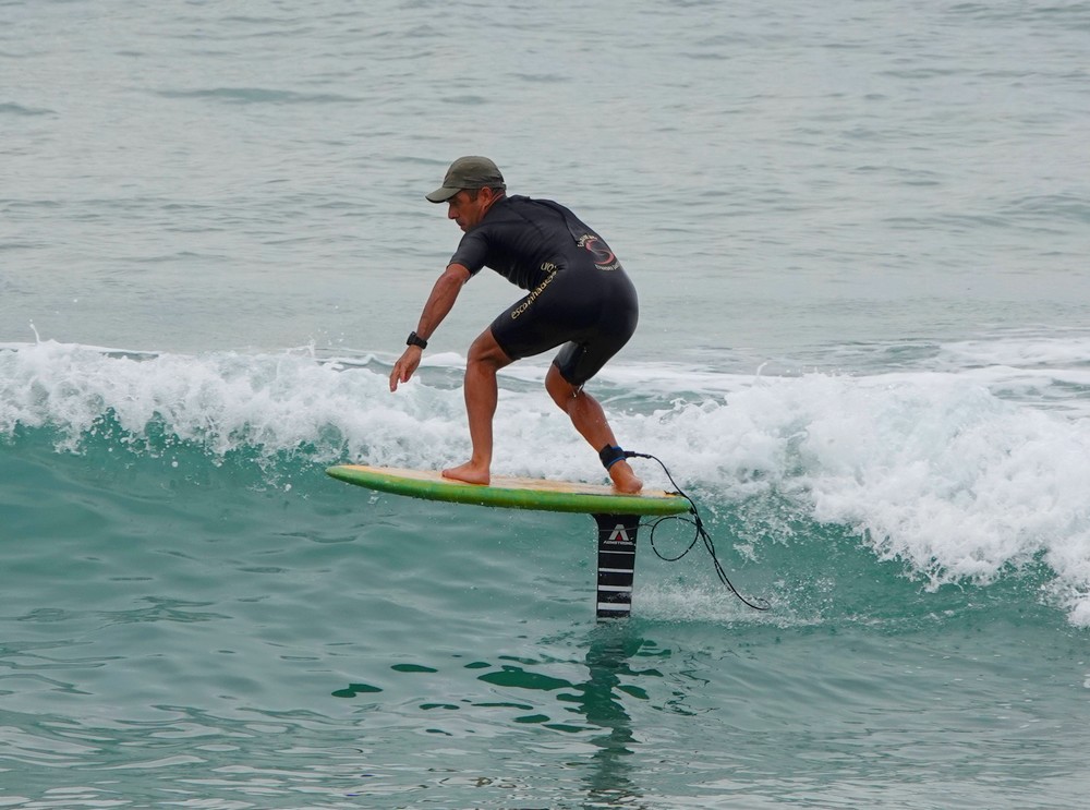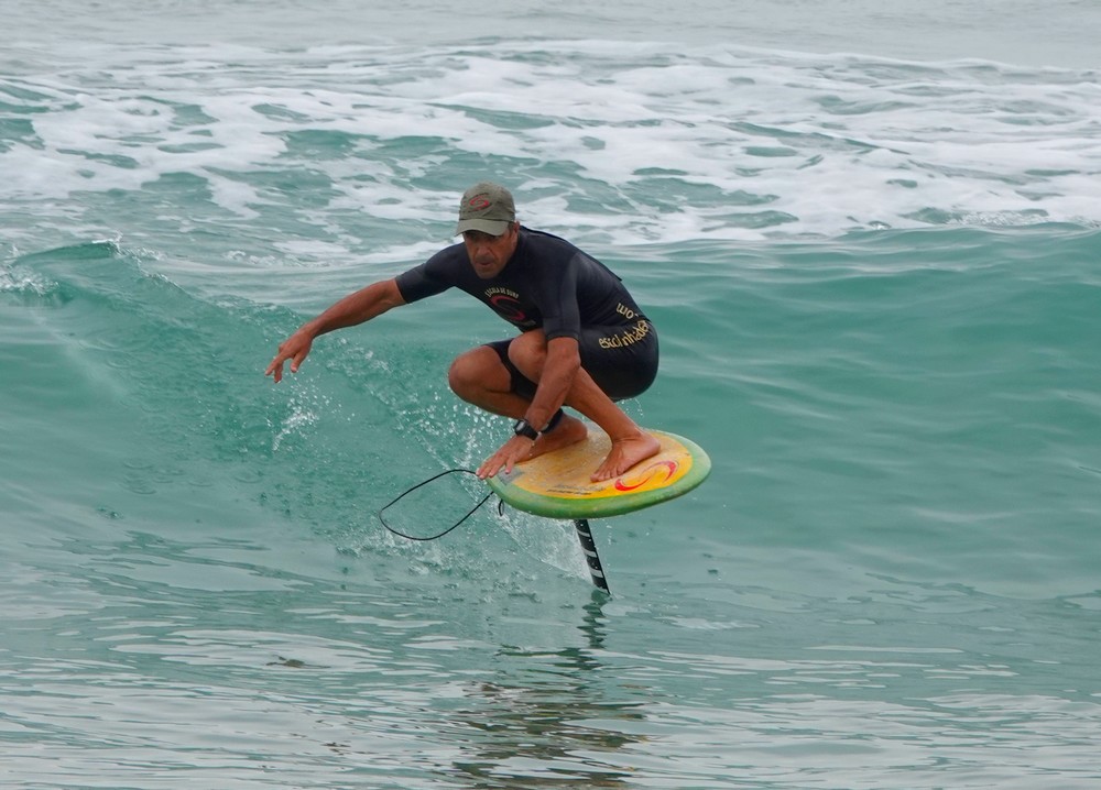 En crapahutant un peu sur les rochers, nous passons sur la seconde plage, la Praia Mole, qui attire de nombreux surfeurs de tous niveaux – dont un qui fait de très belles figures sur son surf foil. Impressionnant !