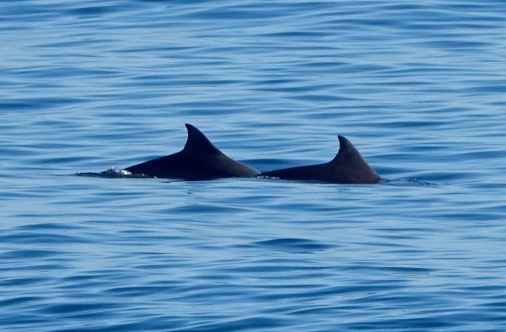 En chemin, nous apercevons un groupe de trois ou quatre dauphins : magnifique, mais ceux-ci ne prennent pas la pose et Gérard a beau leur courir après, il se fait rapidement distancer !