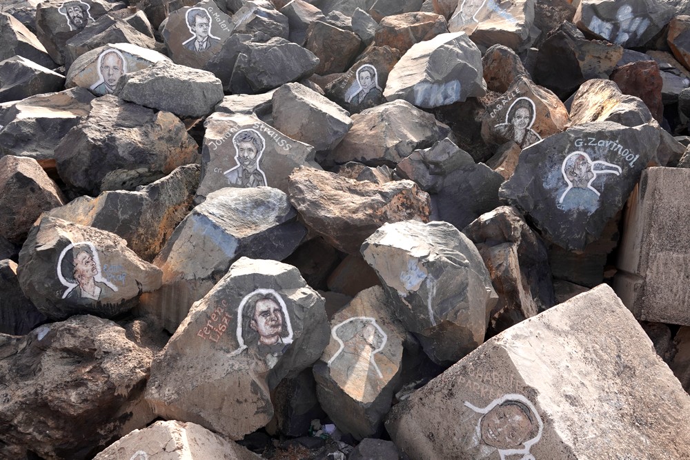 Juste devant l’auditorium, on est surpris par l’originalité des pierres qui enrochent le front de mer, dont certaines sont peintes à l’effigie des grands musiciens ou chanteurs d’hier et d’aujourd’hui… Une belle initiative !