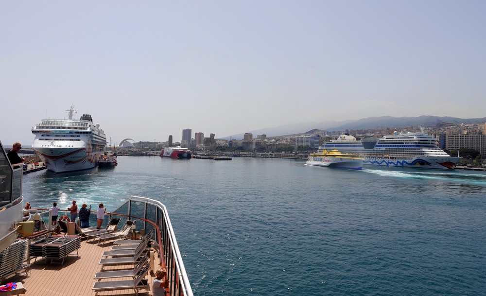 En voyant les côtes s’éloigner, nous avons beau scruter l’horizon, mais nous n’apercevons pas le fameux Teide, stratovolcan qui culmine à 3715m d’altitude, ce qui en fait le sommet le plus élevé d’Espagne. Dommage, ce sera pour une prochaine fois – et oui, une de plus ! – car ne connaissant pas les Canaries, il nous semble qu’une visite plus approfondie serait bienvenue, les randos et découvertes naturelles étant nombreuses dans l’archipel…