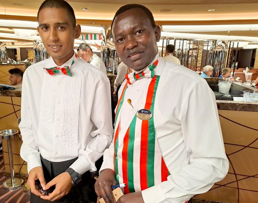 Et c’est parti pour 16 nuits de voyage, ponctuées de quelques escales au Brésil et en Espagne… Étant curieux de découvrir l’envers du décor d’un tel paquebot, et d’en savoir plus sur son fonctionnement, que ce soit au niveau des passagers que du personnel – qui, comme sur l’Armonia, est charmant et très compétent – nous sollicitons une interview auprès du responsable des relations publiques. Malheureusement, nous recevons une fin de non-recevoir, la politique de MSC étant de ne rien communiquer sur aucuns sujets, même les plus basiques… Bref, la croisière s’amuse… mais ne se mouille pas ! Déjà, lors de la réservation de nos deux transatlantiques en aout dernier, nous avions interrogé à maintes reprises le service client et l’espace média afin de solutionner quelques interrogations d’ordre pratique : demeurés muets jusqu’alors, nous avons enfin obtenu une réponse très incomplète et en partie erronée trois jours avant de quitter Rio !