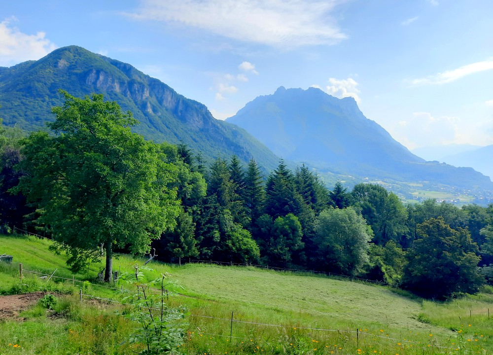 Le vieux bourg de Saint Pierre est un peu excentré du camping – à moins que ce ne soit le contraire ! – et un bon coup de pédale est nécessaire pour grimper à vélo les 130m de dénivelé positif qui le séparent de la plaine. Autrefois, le bas de la vallée était parsemé de marécages sujets aux crues de l’Isère, c’est pourquoi la plupart des habitations de la Combe de Savoie étaient construites sur les contreforts des Bauges. Néanmoins, même si la côte est rude, il serait dommage de ne pas faire un tour dans ce village bien animé où quelques commerces méritent un arrêt !