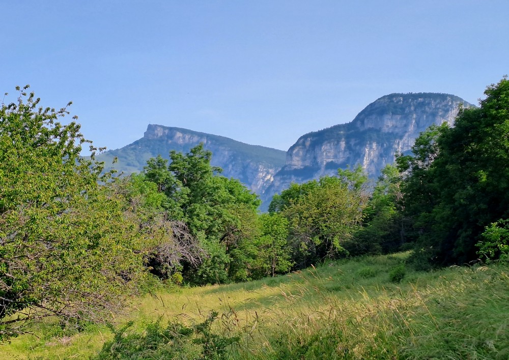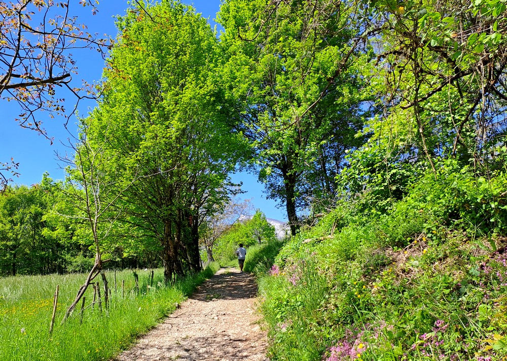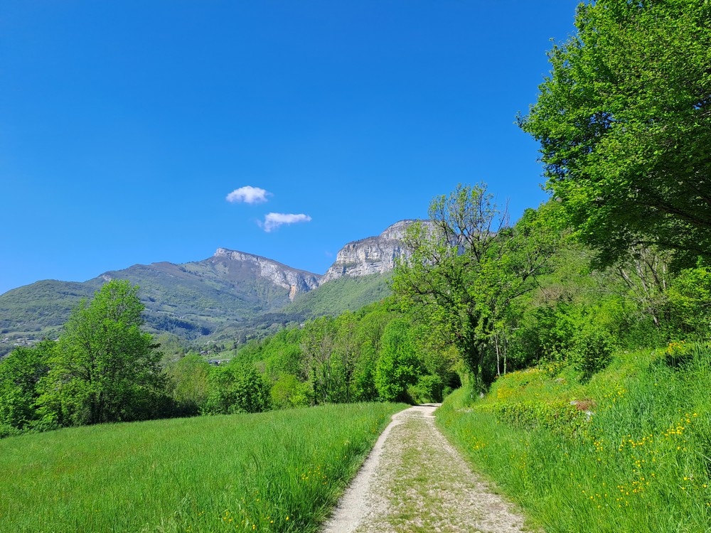 C’est un itinéraire classique que l’on emprunte assez souvent pour se dégourdir les jambes : depuis Challes, il suffit de rattraper la voie verte qui vient de Chambéry – elle passe non loin de Médipôle et de l’autoroute – puis de suivre le fléchage « boucle du lac Saint André » ! L’itinéraire est bien bucolique puisqu’après la voie verte, il suit de petites routes de campagne très tranquilles, et on évolue en permanence sous la fameuse montagne du Granier, dont l’éboulement de 1248 est le plus grand effondrement de montagne connu dans l’histoire.