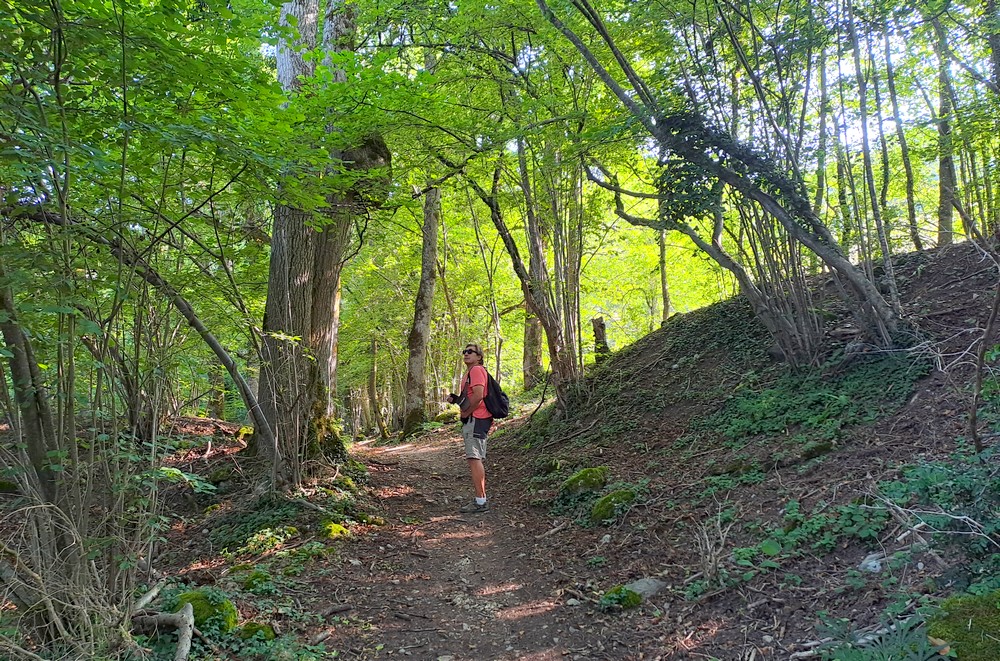 Eh non, nous ne nous sommes pas téléportés en Normandie ! Ici, le mont Saint Michel est la montagne qui, du haut de ses 895m, domine Challes-les-Eaux. Au départ du camping, plusieurs itinéraires sont possibles, et après en avoir testé quelques-uns, nous optons pour une montée via la Ferme des Résistants sur un chemin peu accidenté et plutôt doux pour les pieds. Nous découvrons de nombreuses fleurs, en particulier des lys martagon, une espèce assez rare et protégée. Au sommet, le panorama sur la vallée et, en face, le massif de la Chartreuse est saisissant ! On surplombe aussi l’aérodrome de Challes, centre réputé pour les planeurs. Après un dernier coup d’œil à la Chapelle érigée en 1879, nous décidons de redescendre par la Boisserette et Saint Jeoire Prieuré. Cette fois, le sentier est plutôt casse-pattes, raide et caillouteux à souhait ! Quoiqu’il en soit, nous recommandons cette balade un poil sportive mais néanmoins très agréable, avec des paysages très variés. Et après l’effort, nous apprécions le réconfort d’un déjeuner au Chalet du Minigolf, situé juste à côté du Casino !