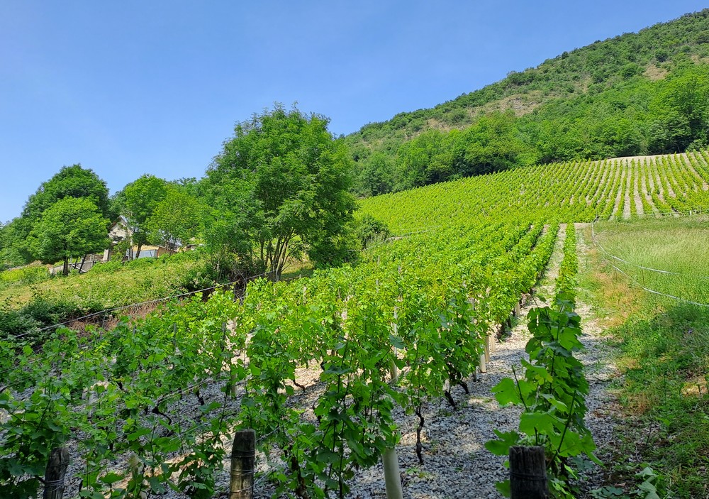 Encore un beau parcours bien varié qui se déroule d’abord sur piste de terre et petites routes tranquilles, au gré de l’inspiration ! A Chignin, il ne faut pas louper la dégustation – et l’achat éventuel ! – de crus locaux bio. Une fois de retour en bas de la montagne, la visite du sanctuaire de Notre-Dame de Myans vaut le coup d’œil, avec ses deux églises installées l’une sur l’autre et sa grande Vierge dorée que l’on voit de très loin. La balade se poursuit jusqu’au lac Saint André et le retour s’effectue par le même itinéraire que la balade précédente.