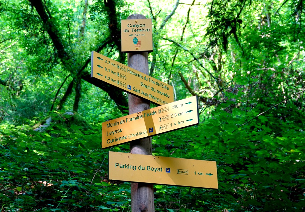 - Au départ de Saint Alban Leysse, l’attaque se situe dans le prolongement de la rue de la Guillotière, au Bout du Monde. Fléchage correct dans la première partie, moins présent pour le retour (tenter de repérer les marques bleues). Suivre Bout du Monde / Chemin des Vignes & Passerelle du Trou de l’Enfer / Canyon de Ternèze / Leysse. Nous avons fait une petite variante avec les étapes suivantes (pas nécessaires !) : Saint Jean d’Arvey, Puygros et le château de la Bâtie.