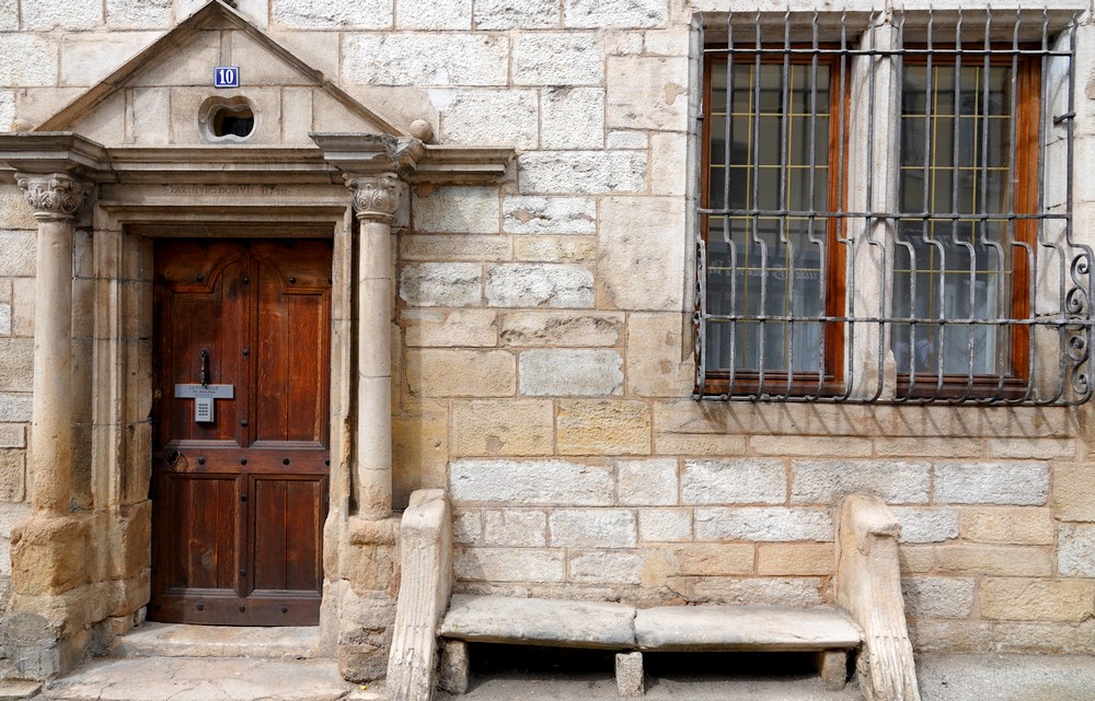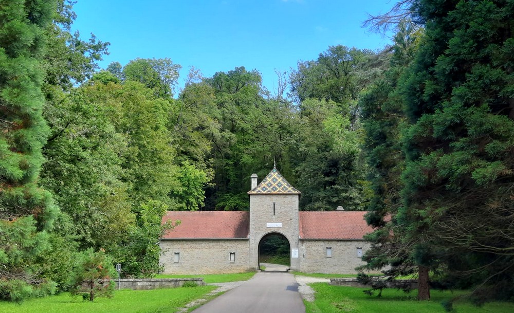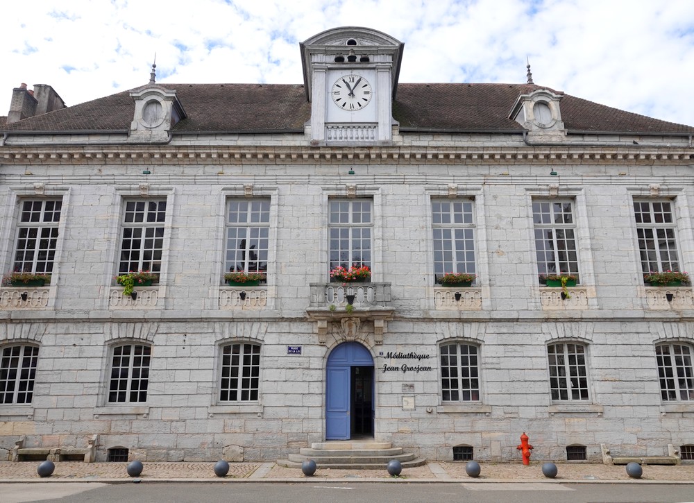 Comme nous laissons notre camping-car dans un garage à Autechaux pour sa révision annuelle, nous en profitons pour aller à vélo jusqu’à Baume-les-Dames – une descente de presque 6km sans quasiment donner un coup de pédale, on sait d’avance que la remontée sera douloureuse ! Une fois nos vélos parqués, nous récupérons le circuit piétons édité par l’Office de Tourisme et partons arpenter la ville encore endormie. Si le bâtiment le plus remarquable reste sans conteste la Maison à Tourelle, de style Renaissance et édifiée en 1574, l’église Saint Martin, datant du XVIIe siècle, possède de très beaux vitraux. En revanche, nous avons été un peu déçus par l’abbaye Saint Odile dont on ne peut visiter l’intérieur…
