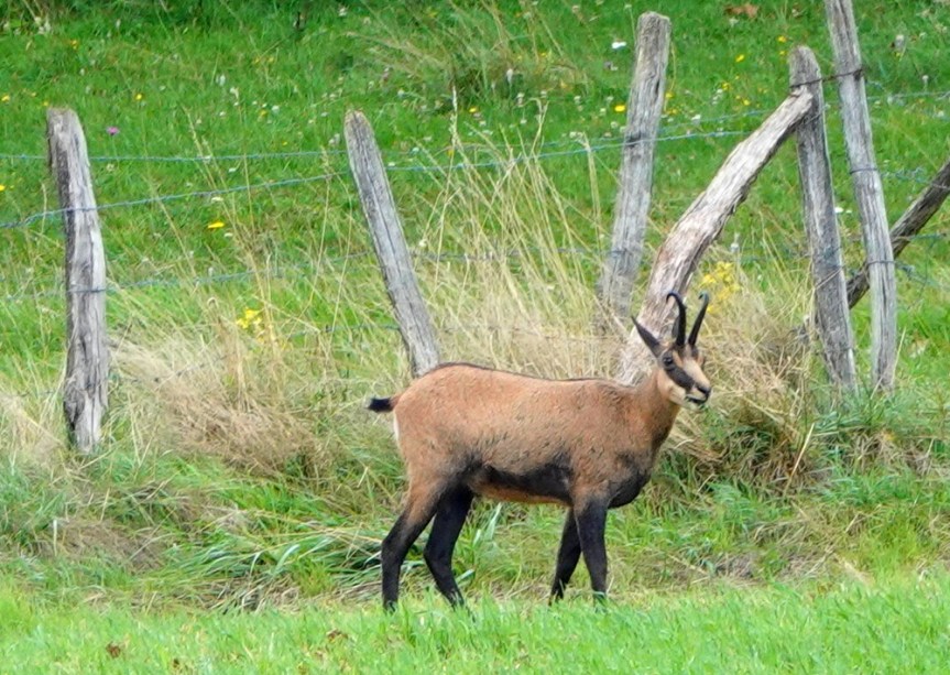 Point d’orgue de cette sortie : l’observation d’un chamois qui broute tranquillement dans un champ en lisière de forêt ! Une vision presque incroyable pour nous, tant on sait qu’il est difficile d’apercevoir ces animaux à moins de 2000m d’altitude en Savoie…
