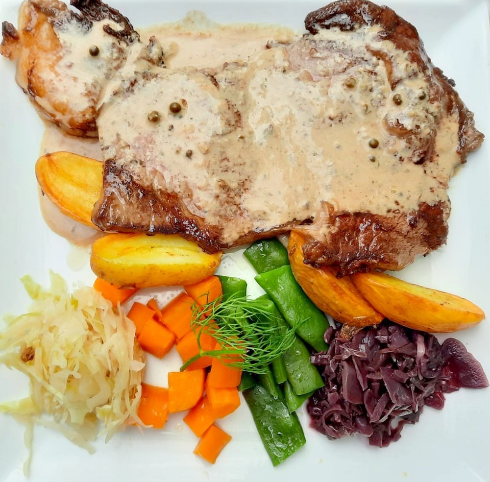 Après cette petite balade, un gargouillis familier se fait sentir en provenance de l’estomac : normal, il est presque midi ! Alors, pour conclure agréablement notre découverte de Baume-les-Dames, nous nous installons sur la terrasse du Charleston, un restaurant très bien noté du centre-ville où nous dégustons risotto au foie gras, entrecôte sauce au poivre et ses légumes, soufflé glacé au Pontarlier et tiramisu aux griottes. Un pur délice !