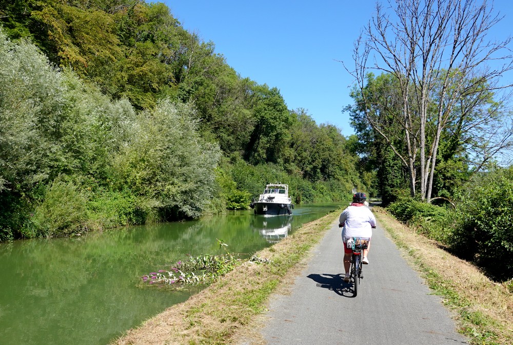 Cette fois, c’est en empruntant la célèbre piste cyclable transeuropéenne – elle relie l’Atlantique à la mer Noire –que nous pédalons, sous un ciel menaçant et habillés comme en automne, le thermomètre n’affichant que douze petits degrés. Qu’importe, les nombreuses montées et descentes nous réchauffent vite : eh oui, on a beau rouler le plus souvent au bord du Doubs, la traversée de quelques villages s’éloignant du rivage nous oblige à fournir un énergique coup de pédale !