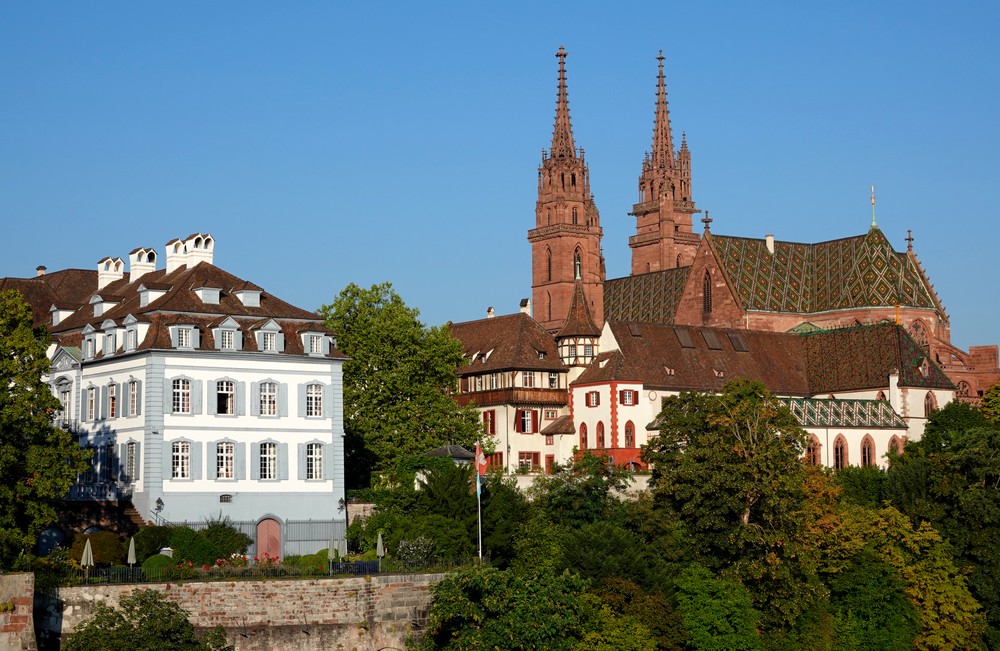 Quelques pas plus loin, nous grimpons au sommet de la butte où fut édifiée, entre 1019 et 1500, la cathédrale protestante Notre-Dame de Bâle, bâtiment médiéval réalisé en blocs de grès roses. Il faut absolument descendre dans sa crypte pour admirer les peintures moyenâgeuses, déambuler dans les deux cloitres en partie couverts, et observer minutieusement tous les détails architecturaux de la façade.
