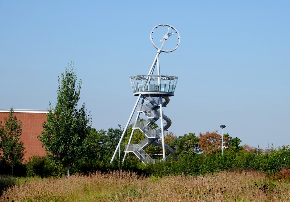 Plus loin, on ne peut s’empêcher de grimper dans la Vitra Tour-Toboggan, haute de 30m, qui est un perchoir idéal pour observer le campus ! Néanmoins, on zappe la descente dans le tube – on se dit qu’il doit y faire beaucoup trop chaud !