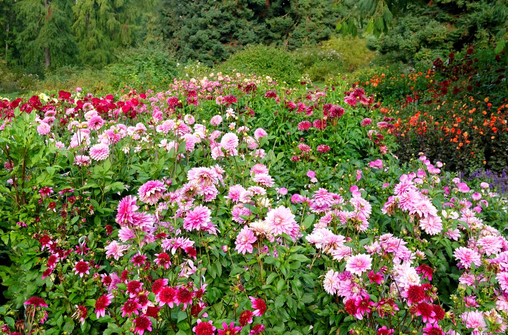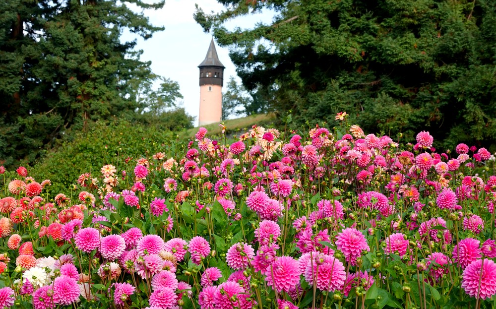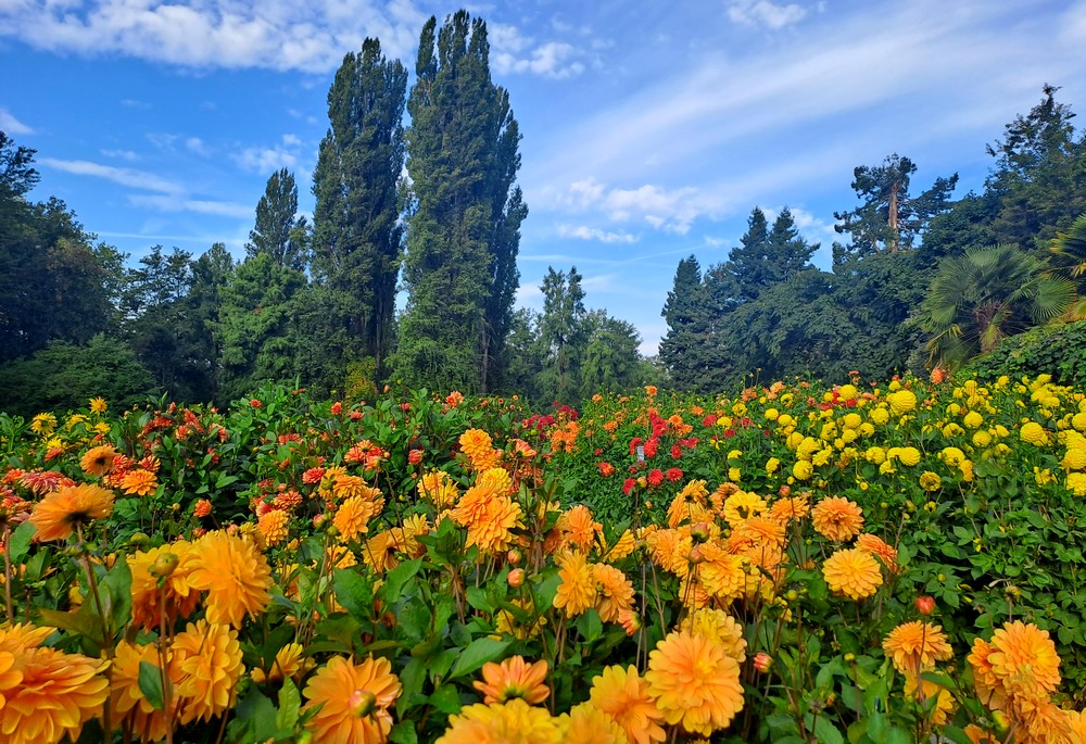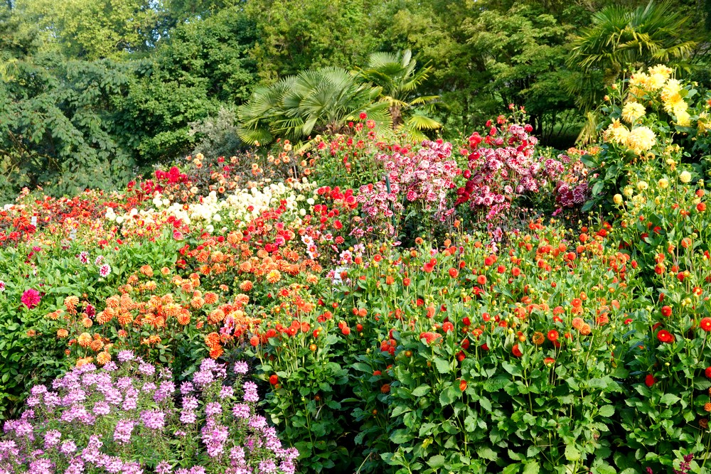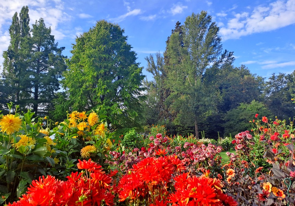 Nous arrivons enfin dans un des secteurs les plus flamboyants du parc : le jardin aux 50 nuances de dahlias ! Un espace fantastique où plus de 280 espèces différentes sont quotidiennement bichonnées par les jardiniers de Mainau. Fleurissant du mois de juillet aux premières gelées, les dahlias explosent de beauté en septembre !