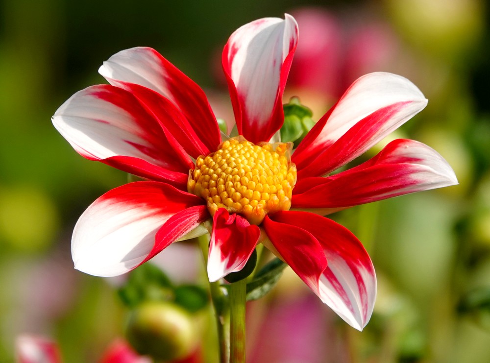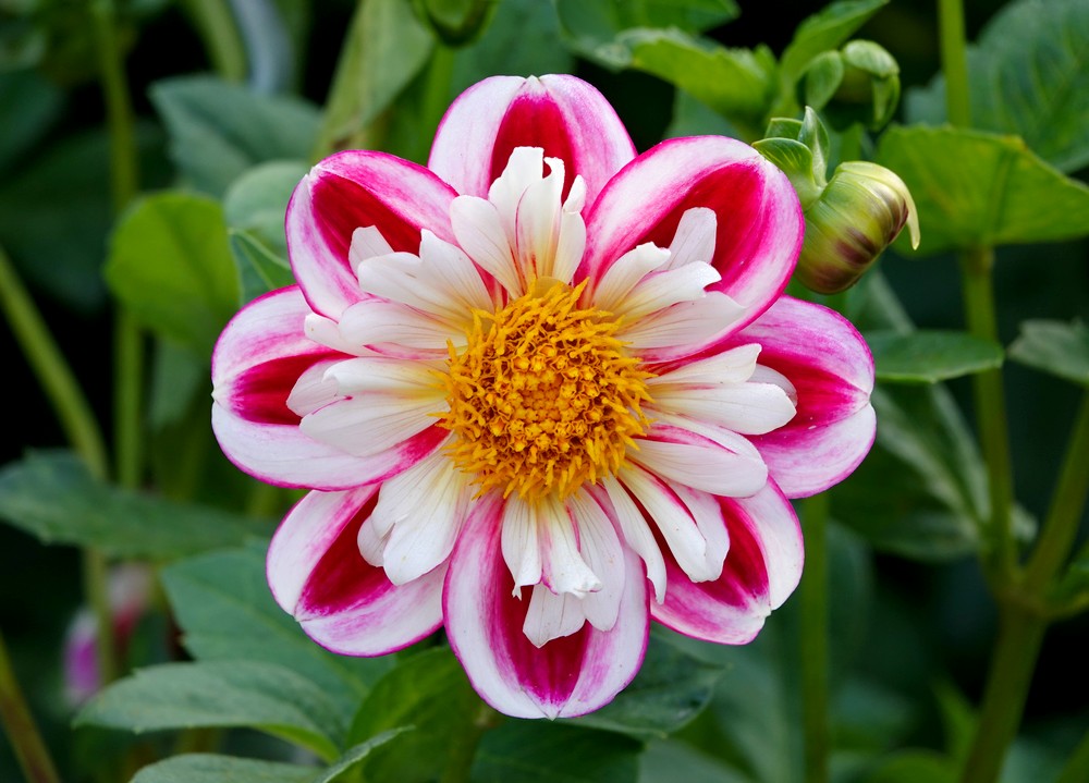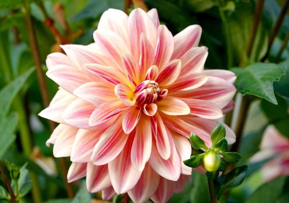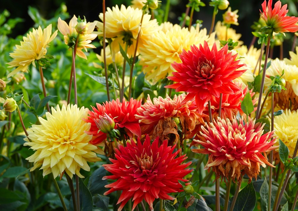 Originaire des régions chaudes du Mexique, d’Amérique centrale et de Colombie, le dahlia était fréquemment utilisé par les Aztèques pour ses feuilles – pourtant amères – et leurs tubercules comestibles servaient à nourrir les animaux. Certains lui conféraient de supposées vertus médicinales, tandis que d’autres le cultivaient comme plante ornementale. Introduit en France en 1802, il fut, un temps, émis l’idée que le tubercule du dahlia pourrait remplacer la pomme de terre, mais cette utilisation fut vite abandonnée, le produit étant trop âcre et filandreux. Depuis deux siècles, c’est donc exclusivement pour ses valeurs décoratives que le dahlia est cultivé ; il compte désormais plus de 40.000 variétés hybrides, aux formes et aux dimensions variées, dans tous les coloris sauf le bleu !