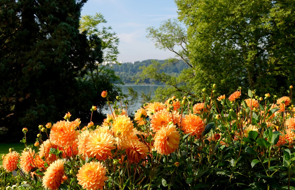 Un peu à regret, nous nous résignons à quitter le jardin des dahlias – il y a encore beaucoup à voir ! – et nous rejoignons le bord du lac, non sans quelques coups d’œil en arrière, histoire de profiter pleinement du spectacle !