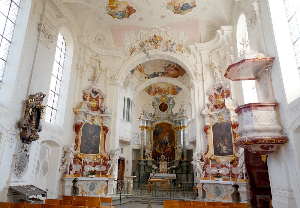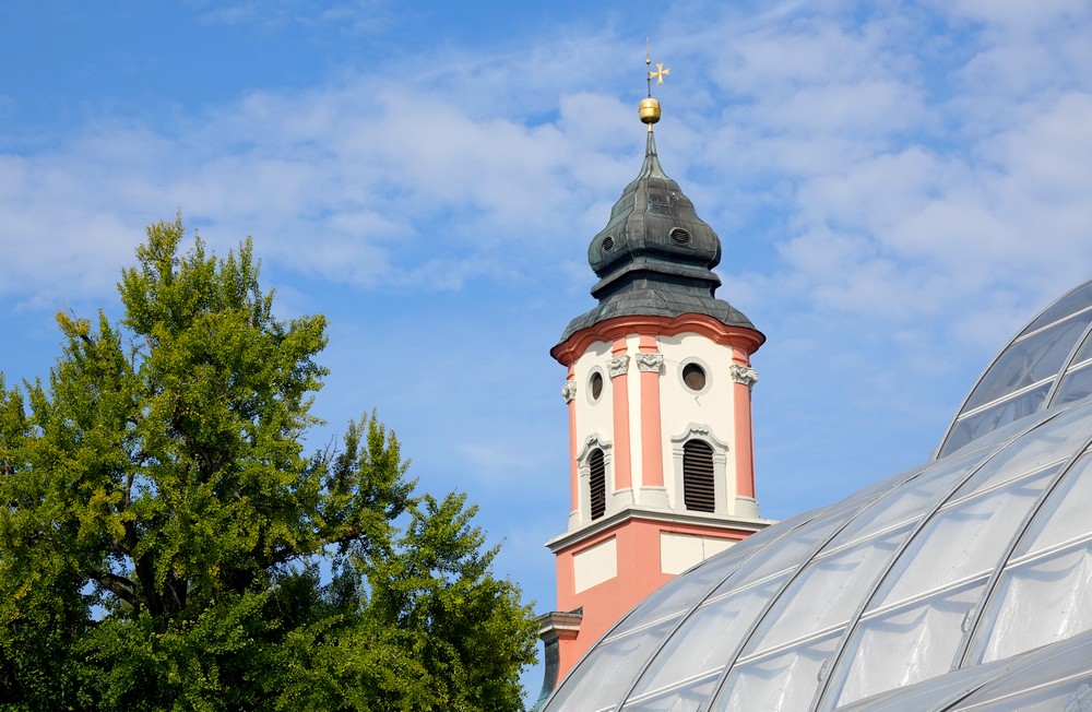 Nous attaquons ensuite la partie haute du parc où, après une belle volée de marches suivie d’un cheminement arboré, nous débouchons sur le château de Mainau, malheureusement en cours de restauration actuellement. Construite entre 1739 et 1746, la bâtisse de style baroque est la propriété – tout comme l’ensemble de l’ile d’ailleurs – des descendants de Lennart Bernadotte, un membre de la famille royale de Suède. Juste à côté, l’église Sainte-Marie affiche elle aussi un style très baroque ! Pour les férus d’histoire, c’est dans la crypte de cette église qu’est enterré le grand-duc Dimitri Pavlovitch Romanov, instigateur du meurtre de Raspoutine et oncle de Lennart Bernadotte.