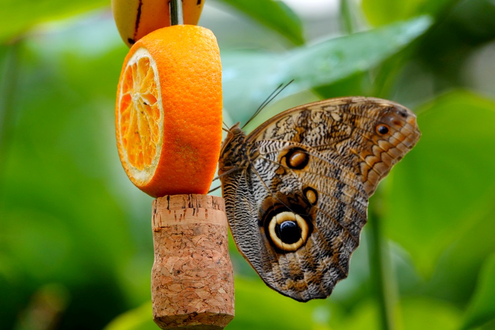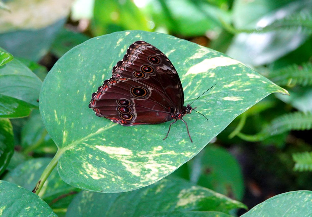 Il nous reste à traverser l’immense arboretum – créé à partir de 1856, il abrite plus de 500 espèces d’arbres dont certaines essences rares et précieuses – pour gagner la serre aux papillons, dernière étape de cette magnifique visite. Alors qu’il fait déjà bien chaud à l’extérieur, à l’intérieur, c’est tropical : 26°C constant avec un taux d’humidité de 90%, une atmosphère idéale pour les quelques centaines de papillons qui évoluent en toute liberté autour de nous !
