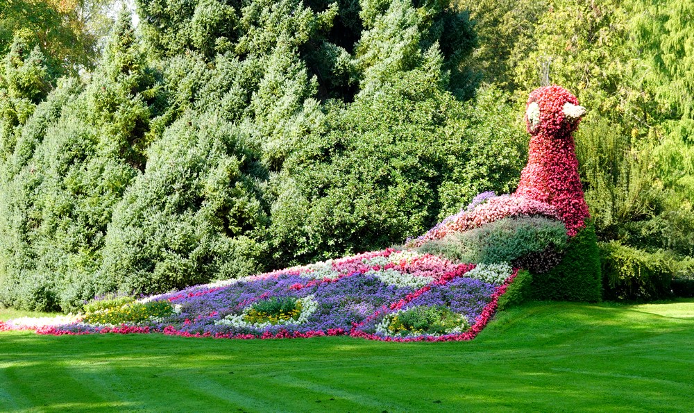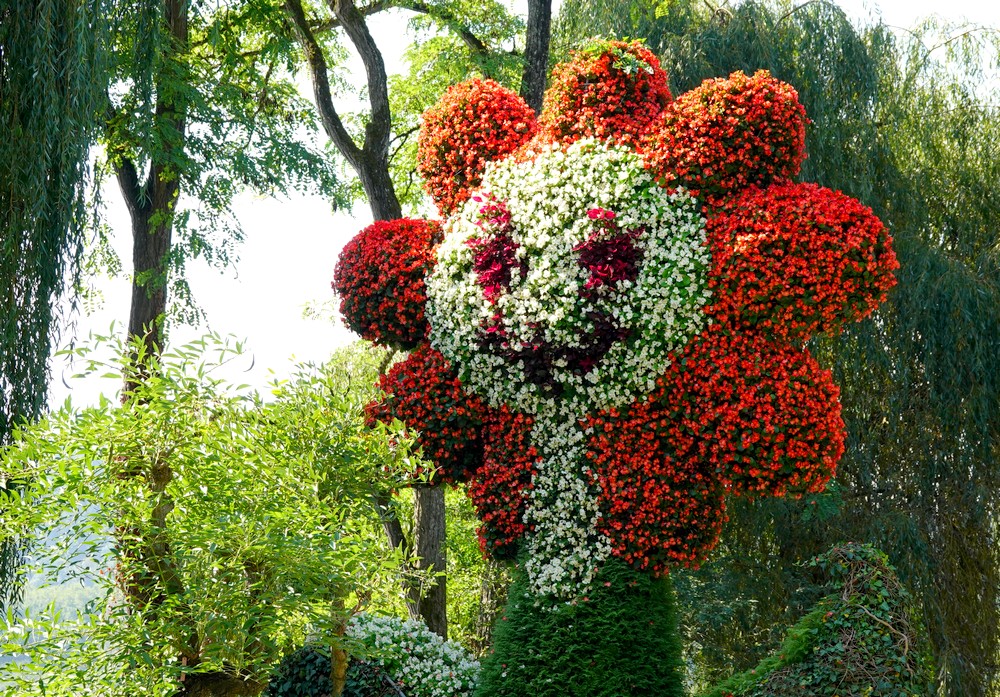 L’ile aux fleurs – comme est fréquemment appelée Insel Mainau – n’usurpe pas son nom, et passé une jolie aire de jeux pour enfants, nous sommes accueillis par trois grandes compositions florales.