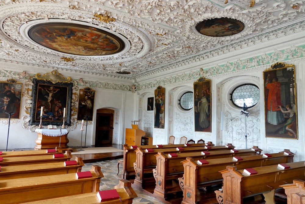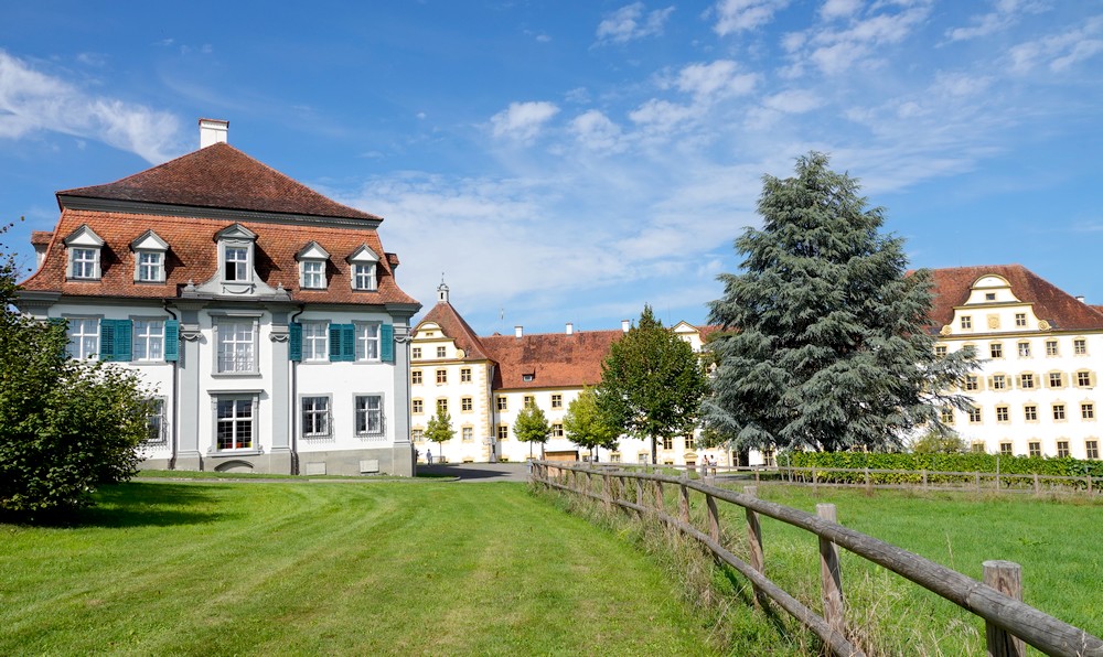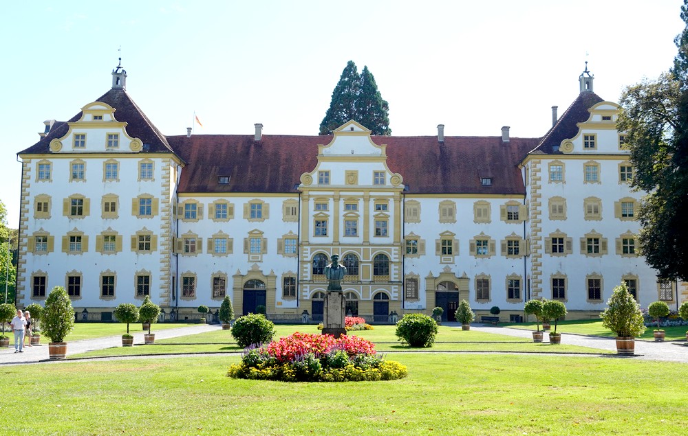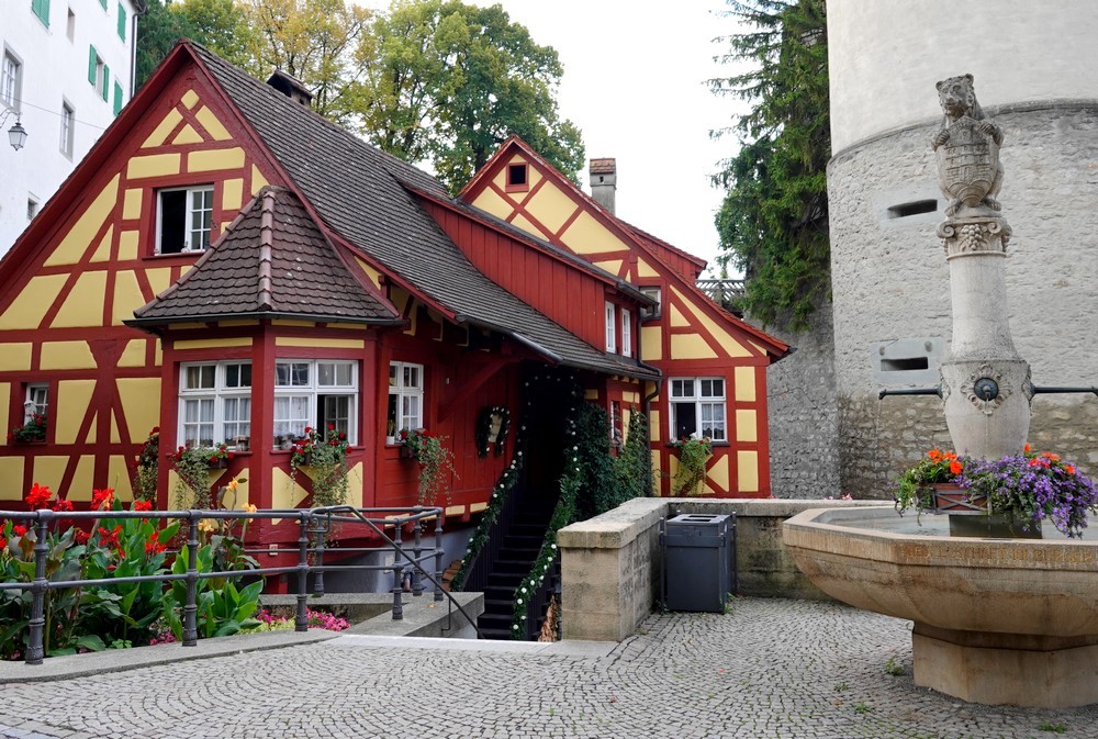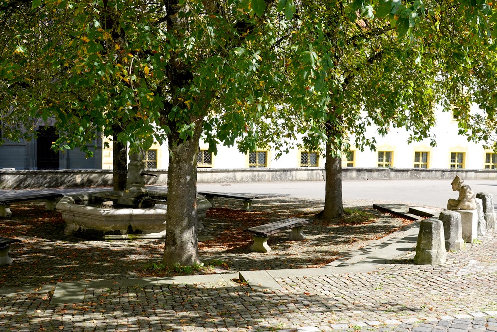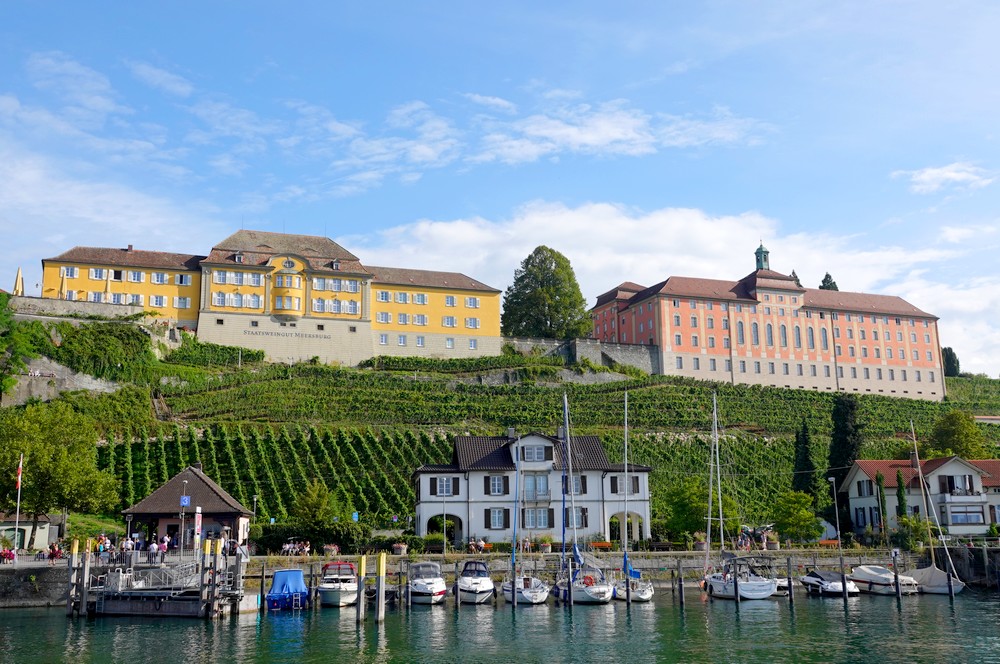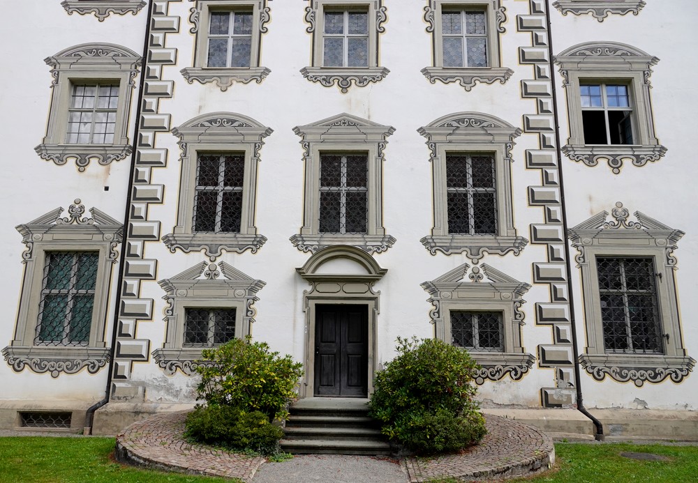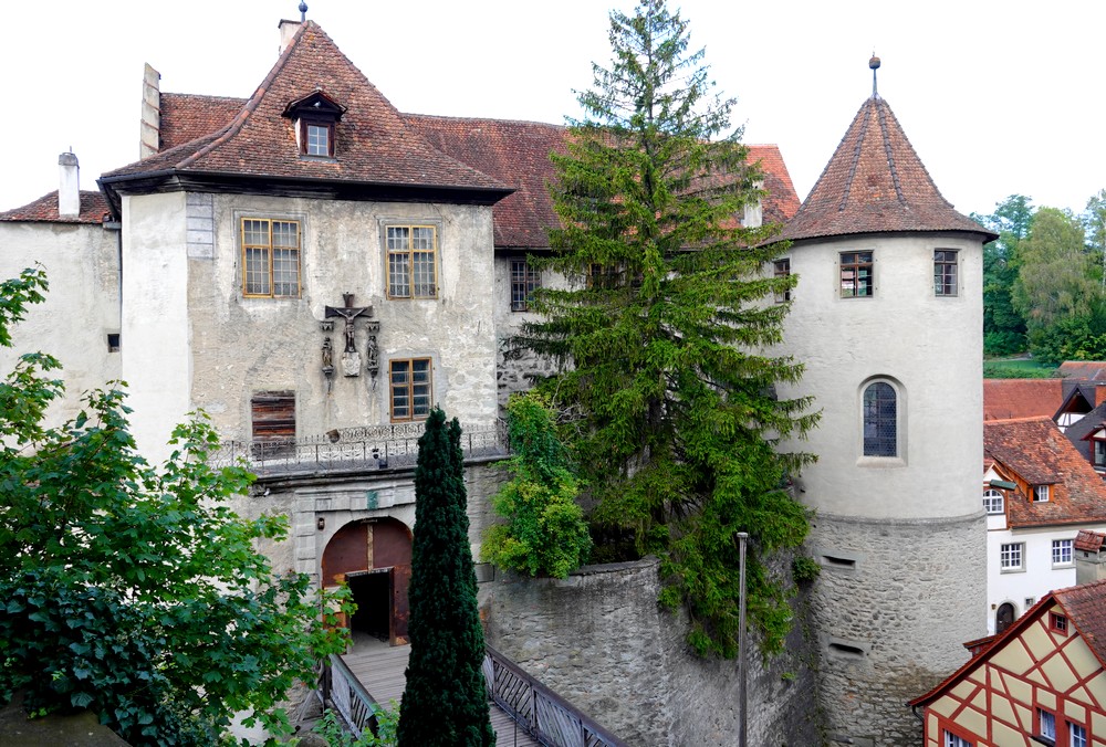 Par une belle volée de marches, nous gagnons la partie haute de la ville, où l’ancien château fort – le Burg, considéré comme le château le plus ancien encore habité d’Allemagne – côtoie le nouveau château de style baroque édifié au XVIIIe siècle – le Neue Schloss. Jusqu’à la sécularisation, les deux bâtiments étaient la propriété de l’évêché de Constance.