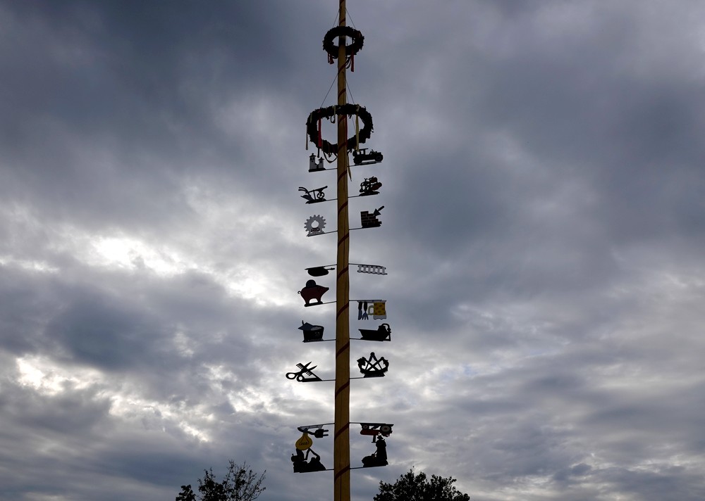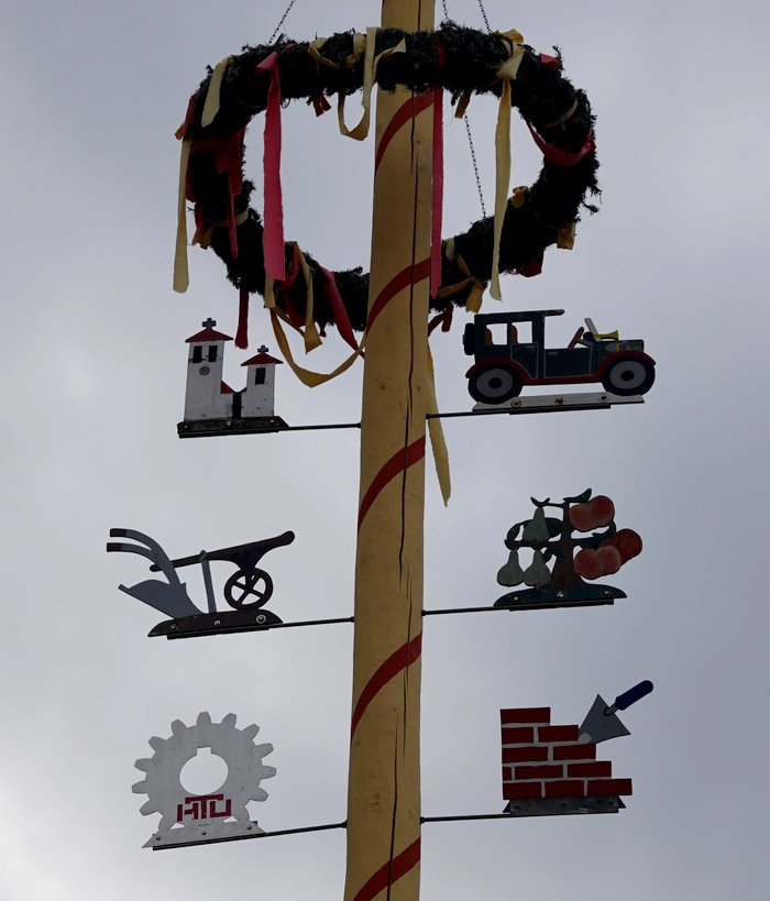 Encore une belle journée ensoleillée qui s’annonce, d’après la météo : alors, malgré un ciel encore très nuageux, nous ne trainons pas et à 8h, nous sommes sur les vélos. Comme de l’autre côté du lac, les pistes cyclables sont nombreuses, et les itinéraires toujours bien fléchés. C’est donc sans l’ombre d’une hésitation que nous rejoignons Meersburg, assurément la plus belle ville médiévale de la région, après avoir traversé quelques villages – par ici, on retrouve sur presque chaque place principale un mât de cocagne – et longé le lac encore embrumé.