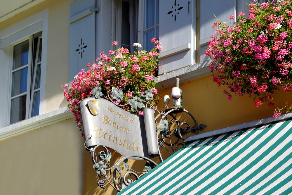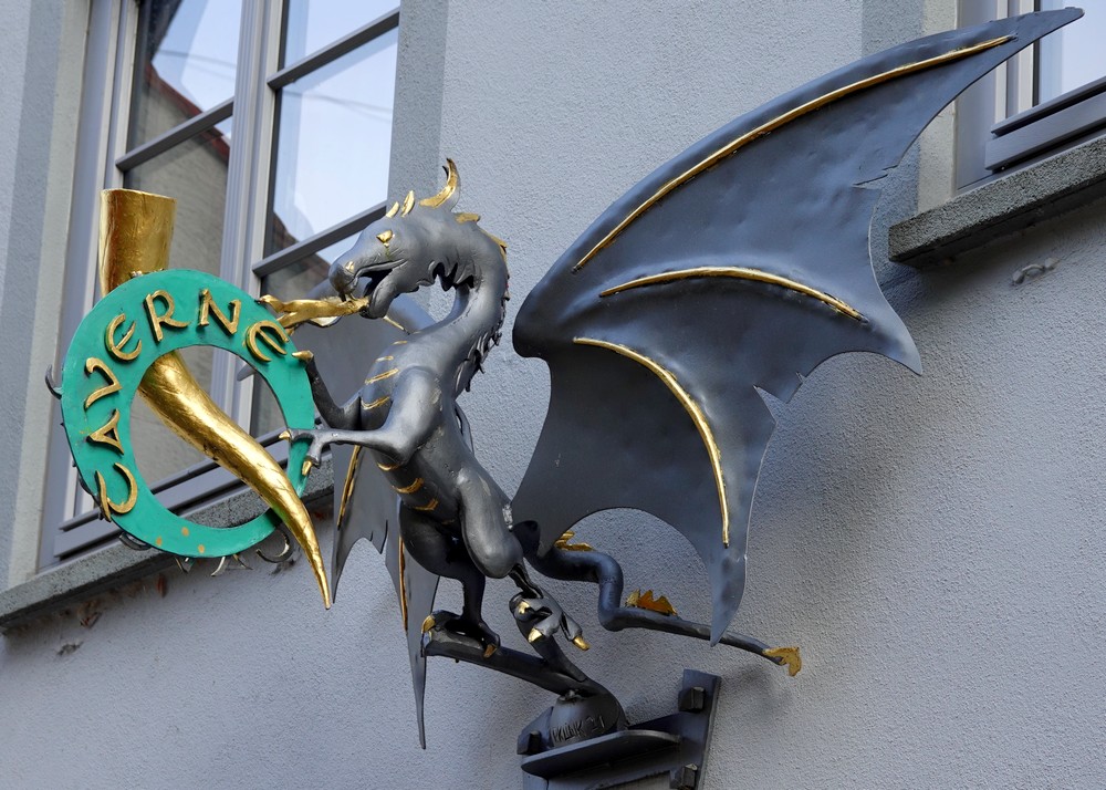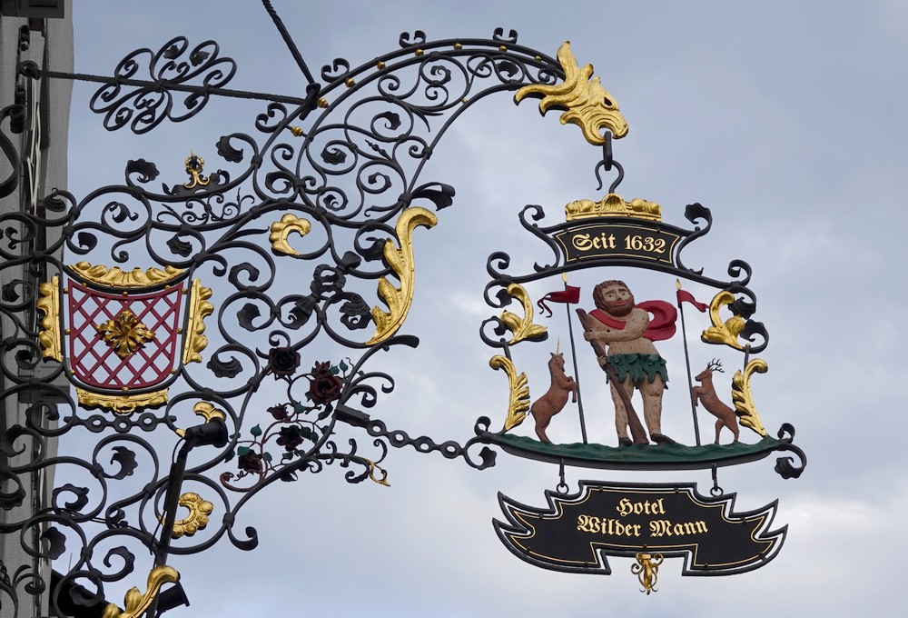Nous passons un bon moment à nous balader dans les petites rues de la ville haute, bordées de belles maisons colorées à colombages. Comme à Constance, Stein am Rhein ou encore en Alsace, on retrouve les superbes enseignes qui annoncent la présence d’un magasin ou d’un restaurant.